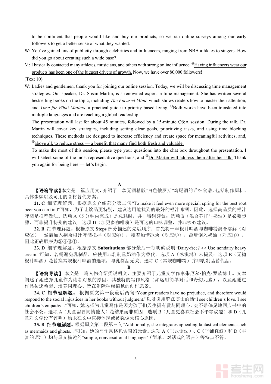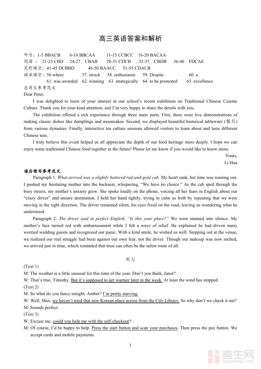 该资料可支持考生完成答题结果核对,清晰识别自身英语知识与技能的薄弱点,为高三下学期后续英语备考的方向调整与策略优化提供数据支撑;同时也能帮助教师开展学情分析,辅助教师针对性调整教学内容与复习计划,提升教学与备考的精准度。