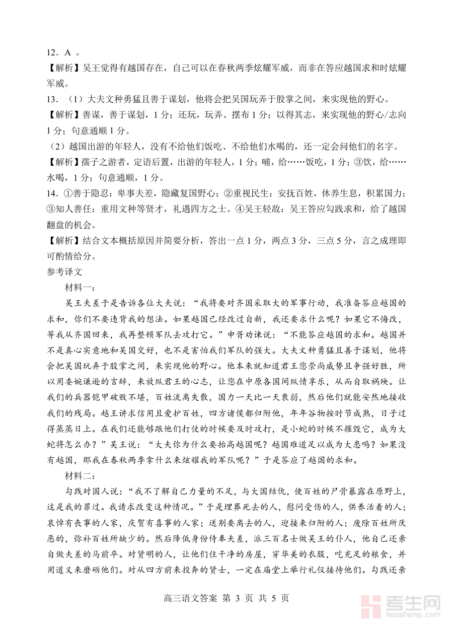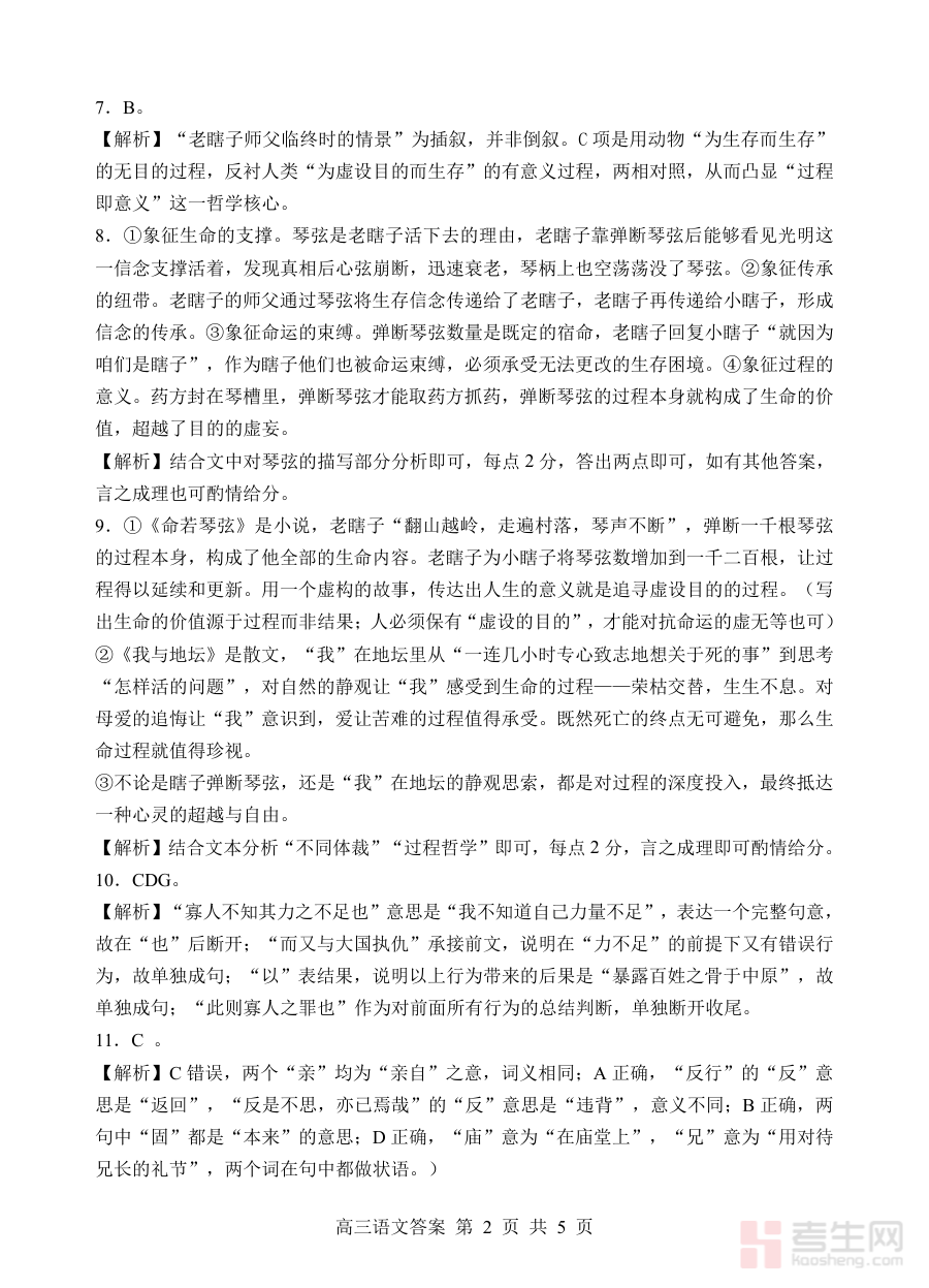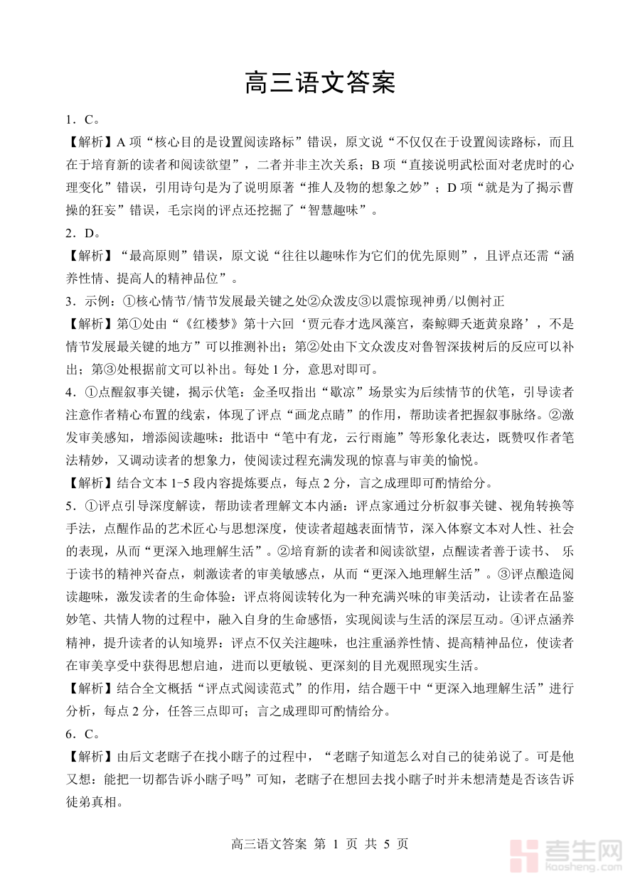 这份答案资料可用于高三学生对开学考试语文科目的作答情况进行自我校验与分析,帮助教学人员高效完成试卷批改并掌握学生的阶段性学习状况,为后续教学调整和备考规划提供数据支持与方向指引,助力优化教学策略与学习计划。
