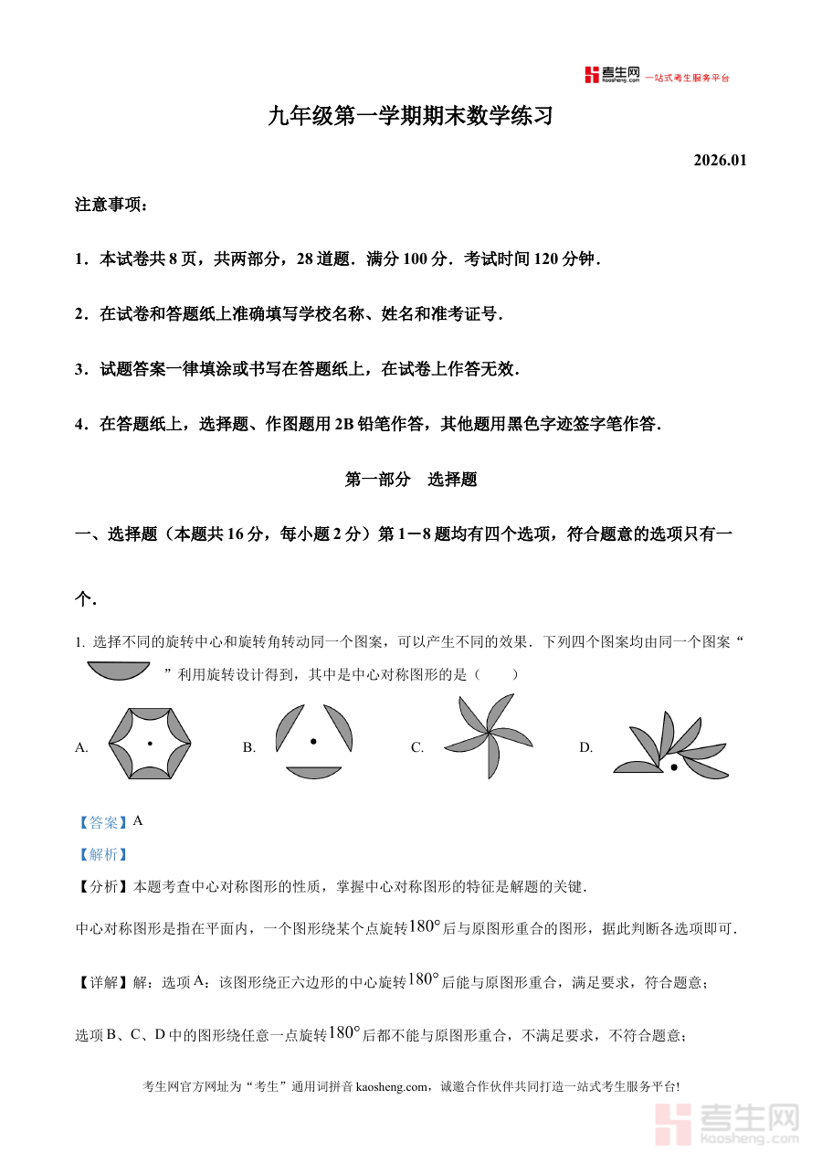 《精品解析:北京市海淀区2025-2026学年九年级上学期期末考试数学试题(解析版)》是针对北京市海淀区2025-2026学年九年级上学期期末数学考试的专业备考资料,聚焦该地区九年级学生阶段性学习成果的检验需求,依托期末考的命题方向与考核目标,为使用者提供贴合区域教学实际的参考内容。