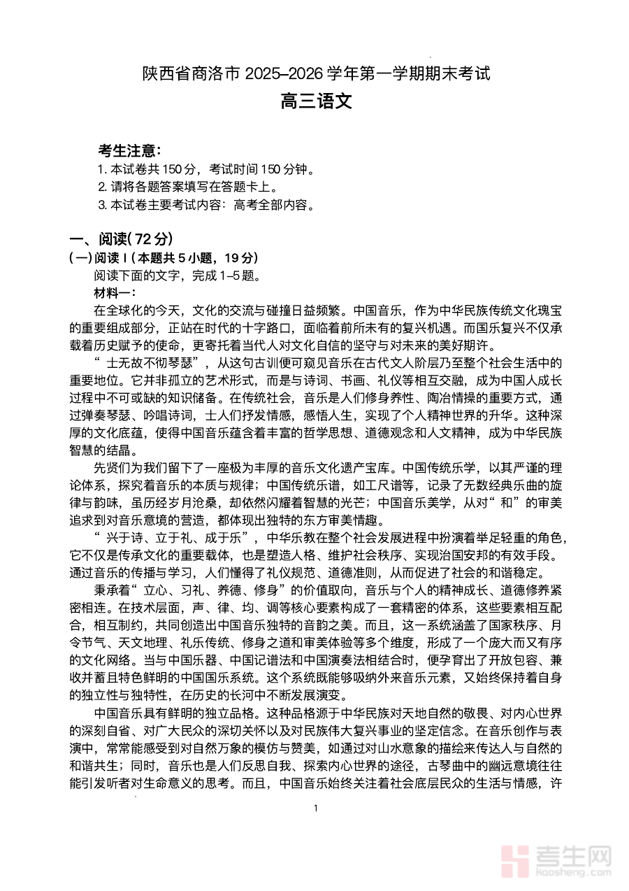 本资料主要适用于陕西省商洛市2026届高三学生群体,特别是处于上学期复习关键阶段、需要进行自我检测与能力提升的学生。参与该考试练习,学生可提前熟悉本地期末考的题型结构与考查重点,增强应试技巧;结合答案进行深入复盘,能够巩固所学知识、完善知识体系,为后续的高考备考积累经验,是高三语文复习过程中具有重要参考价值的阶段性辅助资料。