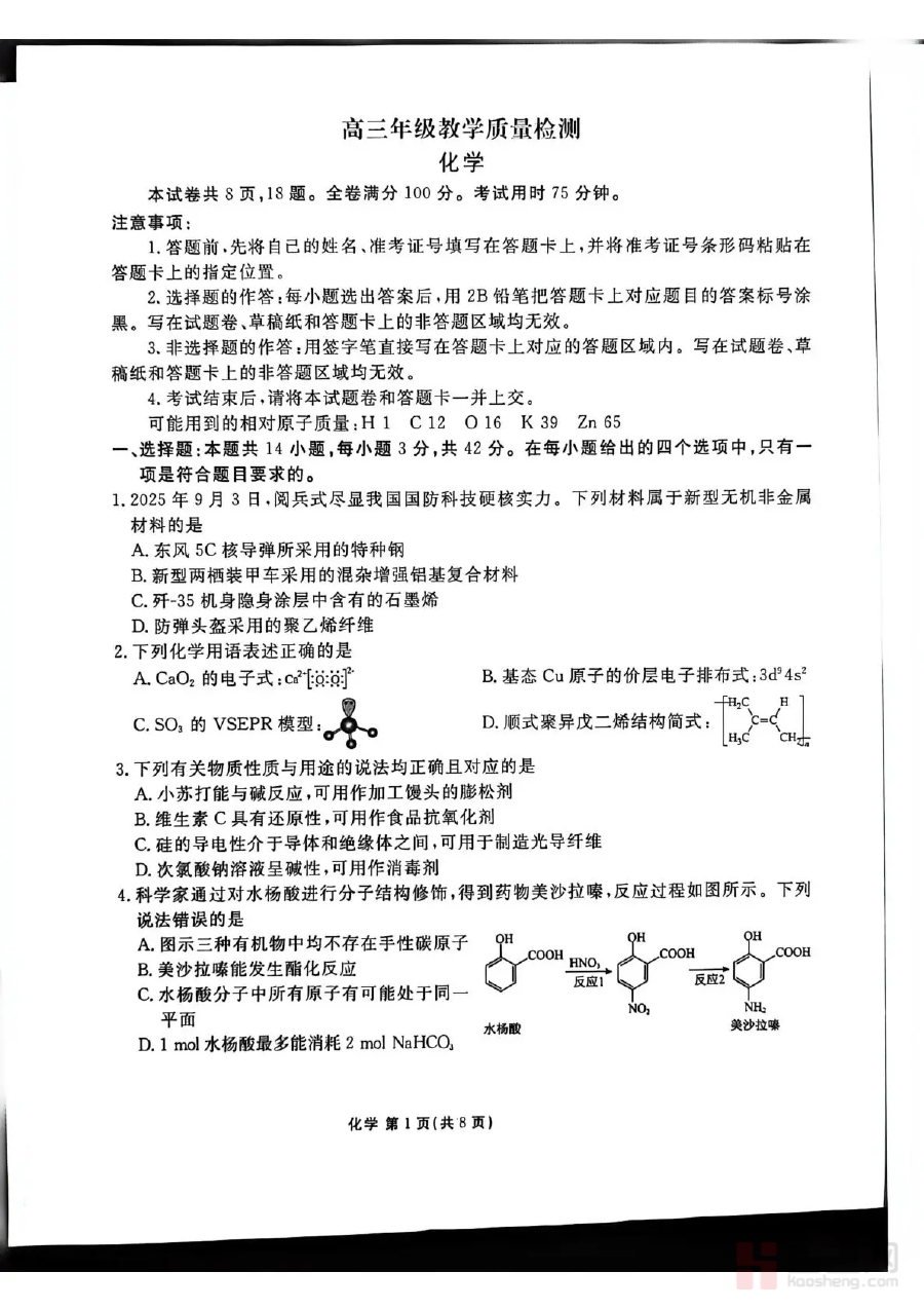 《陕西省衡水金卷2026届高三上学期2月联考化学》是面向陕西省2026届高三学生推出的化学学科阶段性联考资料,紧密贴合该地区高三上学期2月的教学进度与备考需求,旨在为学生提供符合本地考试趋势和教学实际的高质量练习资源。