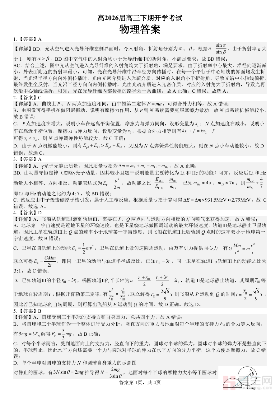 《成都市第七中学2025—2026学年度下期高2026届开学考试 物理答案》是成都市第七中学针对高2026届学生在2025—2026学年度下期开学阶段组织的物理学科考试配套答案资料。它基于该学期开学考试的物理试卷编制,为相关教学与学习活动提供了标准化的参照依据。