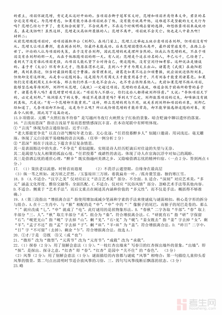 该答案资料可帮助教师快速完成试卷批改与学情分析,精准掌握学生假期后语文知识的掌握程度与能力水平;同时能让学生及时核对自身答题情况,明确知识薄弱点与答题思路偏差,为新学期语文学习计划的制定提供数据支撑,助力调整学习策略以适应新学期教学节奏。