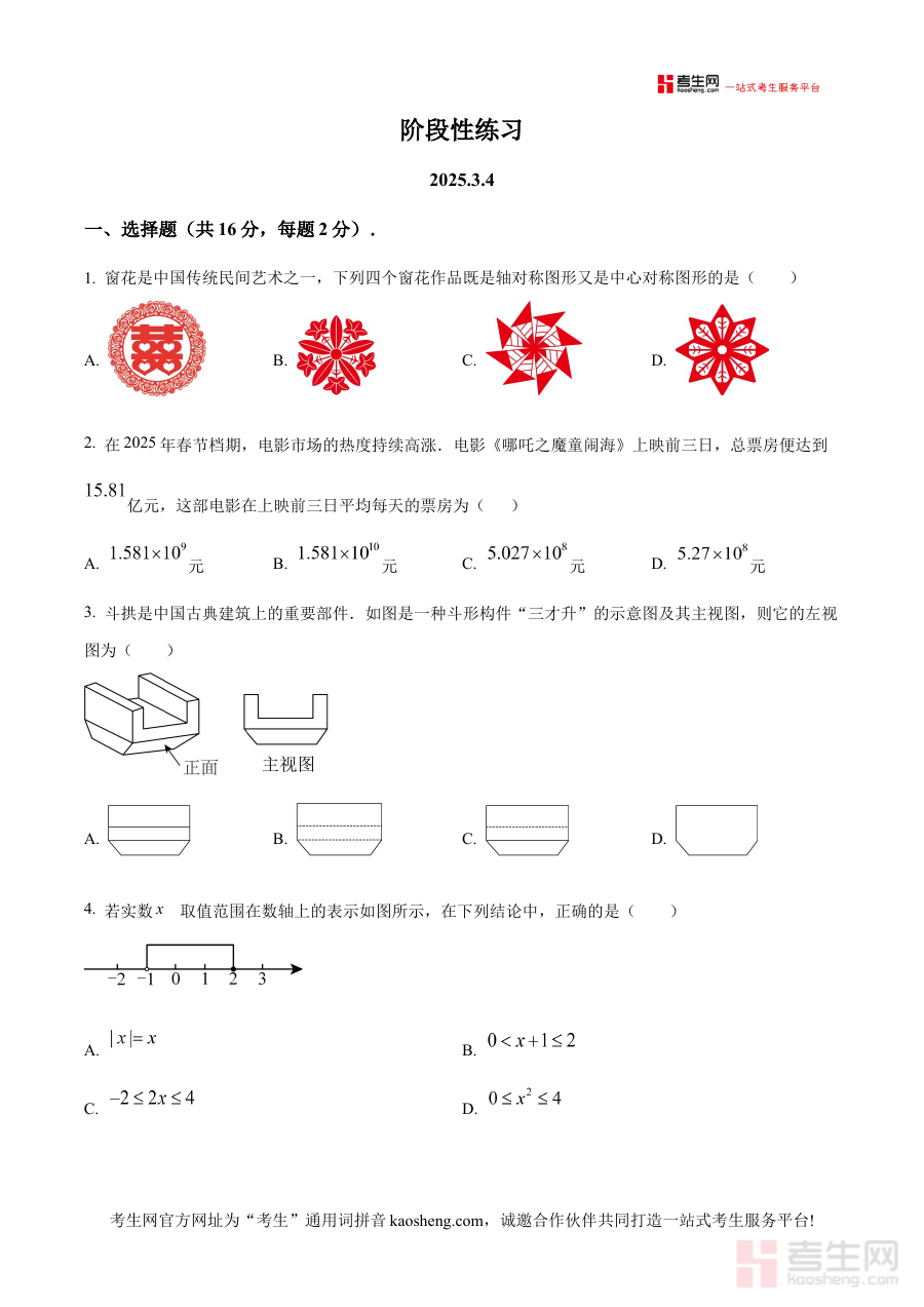 本资料主要适用于北京师范大学附属实验中学2024-2025学年九年级学生,用于该学期3月月考的考前备考与模拟练习,也可作为同区域、同年级其他学校学生了解北师大附属实验中学月考命题特点、开展阶段复习的辅助资料,通过使用该资料能有效提升学生对月考题型的适应性与解题熟练度,助力其在阶段检测中发挥最佳水平并为后续中考备考积累实战经验。