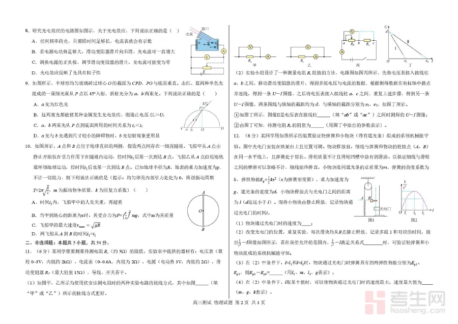 该资料主要用于高三学生在零模阶段的学情诊断与自我评估,帮助学生了解自身在物理学科上的知识掌握情况与能力短板,同时也为教师提供阶段性教学效果的参考依据,辅助教师调整后续的教学计划与备考策略,确保教学与备考方向的精准性和有效性。