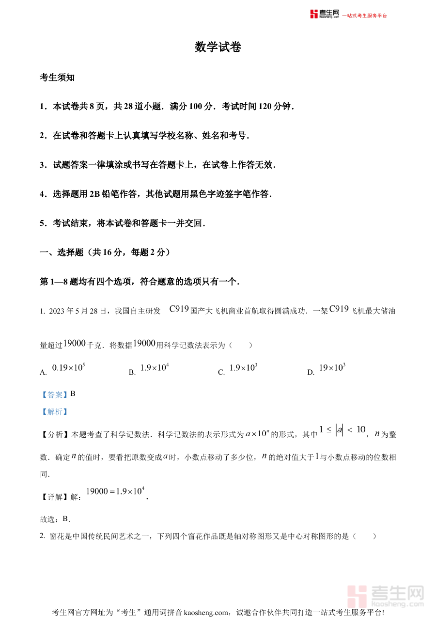 《精品解析:2024年北京市丰台区九年级中考一模数学试题(解析版)》是针对2024年北京市丰台区九年级学生设计的中考一模数学考试配套解析资料,聚焦该地区中考前的重要阶段性模拟考试需求,精准匹配丰台区中考数学命题方向与考试要求,为学生和教师提供权威且系统的试题解析支持。作为中考备考进程中的关键评估环节,一模考试对学生知识掌握程度与应试能力的检测具有重要意义,该资料的推出旨在助力使用者全面理解试题内涵与考查重点。