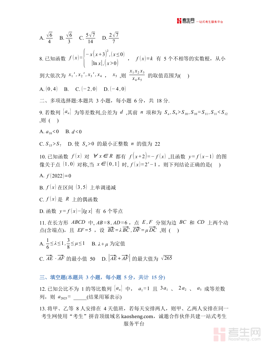 本资料主要适用于吉林通化市梅河口市第五中学的高三学生及数学教师群体。对学生而言,完成试卷并对照答案可快速定位知识漏洞,提升阶段复习针对性;对教师而言,可通过该试卷进行开学后的教学效果评估与教学计划优化,具有显著的阶段检测与备考指导意义。
