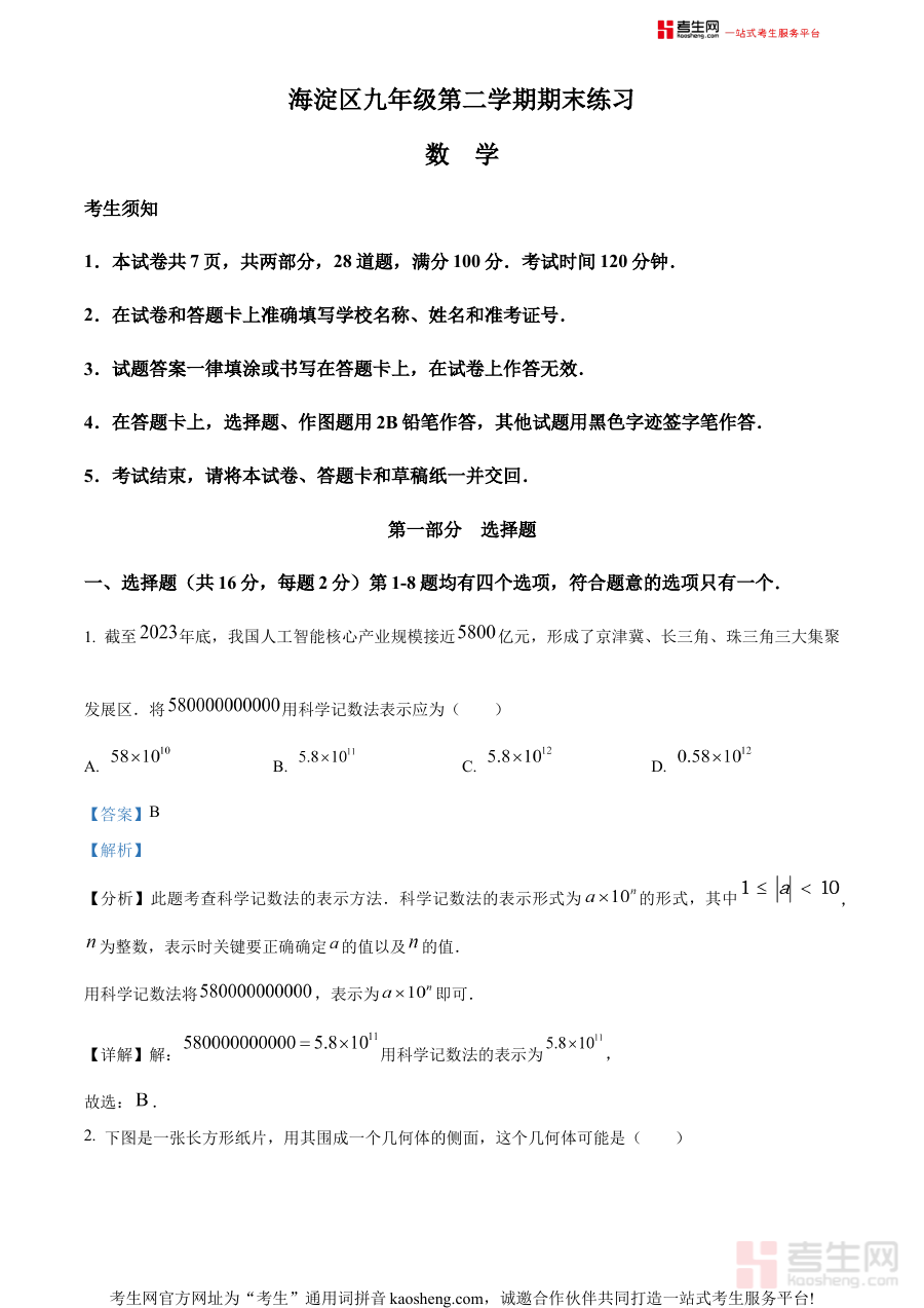 《精品解析:2024年北京市海淀区中考二模数学试题(解析版)》是2024年北京市海淀区针对初中毕业生开展的中考数学第二次模拟考试的配套解析资料。该资料紧密贴合当地中考命题方向与二模考试的阶段性考查目标,为考生提供了与区域考试要求高度契合的解析内容,是考生在中考前关键复习阶段获取针对性指导的重要资源。