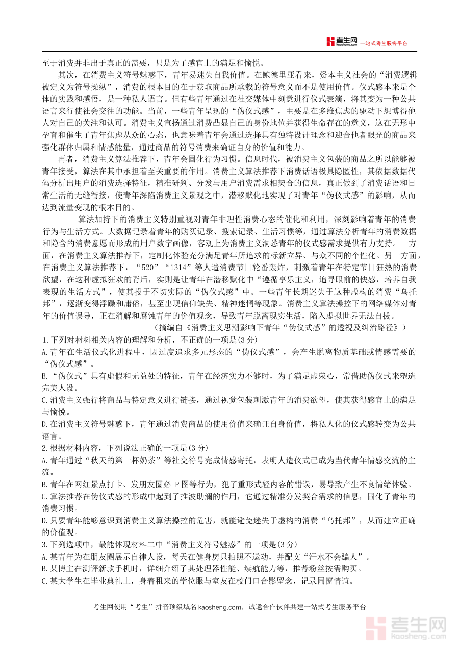 该资料可助力高三学生完成语文学习的阶段性自我诊断,帮助教师掌握班级语文学习的整体情况,为后续教学内容调整与备考计划制定提供依据;同时,学生通过试题练习及答案对照,能清晰识别自身知识短板,进而优化学习方法与节奏。