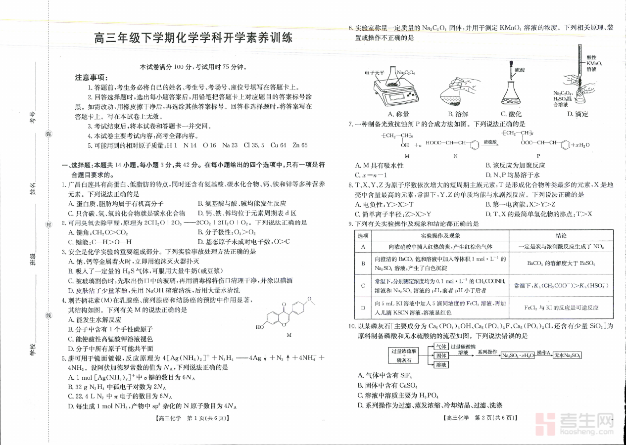 这份资料的主要用途在于实现高三学生开学初期的学情精准诊断与学习状态高效调整。通过完成该素养训练,学生能够系统回顾上学期化学学科的核心知识点,及时发现自身在知识掌握与应用能力上的短板,同时快速适应新学期的学习强度与高考备考的紧张节奏。此外,它还能为教师提供学生开学后的学习情况数据支撑,帮助教师更精准地制定新学期的教学计划与个性化备考指导策略,确保教学与备考方向紧密贴合学生的实际需求。
