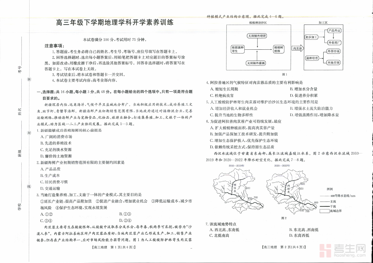 作为开学阶段的素养训练资料,其核心用途在于帮助师生快速诊断学生在地理学科上的知识掌握程度与能力发展状况,为后续的备考规划提供客观依据,助力教师优化教学策略、调整教学重点,同时引导学生清晰认识自身学习优势与不足,确保备考方向更精准、学习效率更高效。