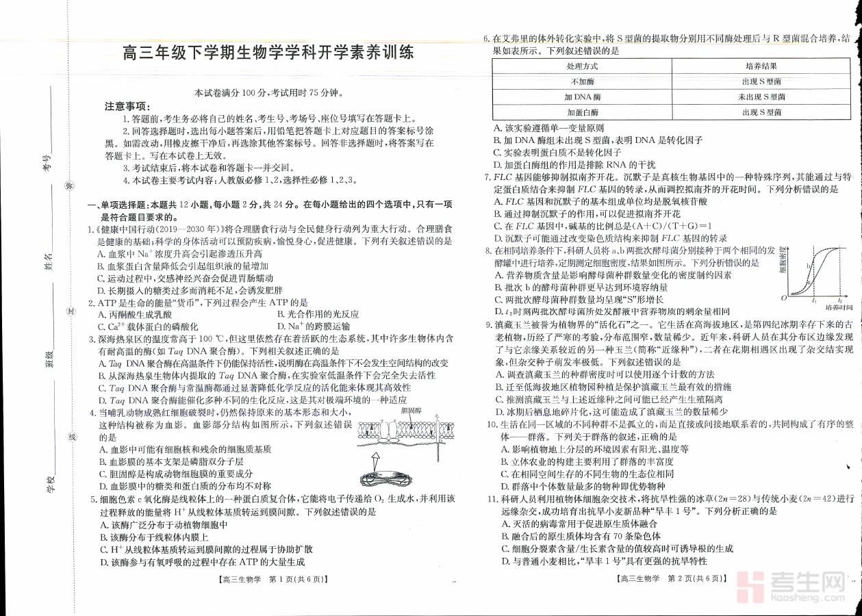 该资料主要用于高三生物学科的开学学情诊断与阶段检测,通过系统化的训练内容帮助师生精准把握学生寒假后的知识巩固程度与核心能力提升状况。它可作为教师调整新学期教学计划、优化备考策略的重要参考依据,也能让学生清晰认知自身在生物学科核心素养与关键能力维度上的优势与不足,为后续针对性复习与强化训练明确方向。