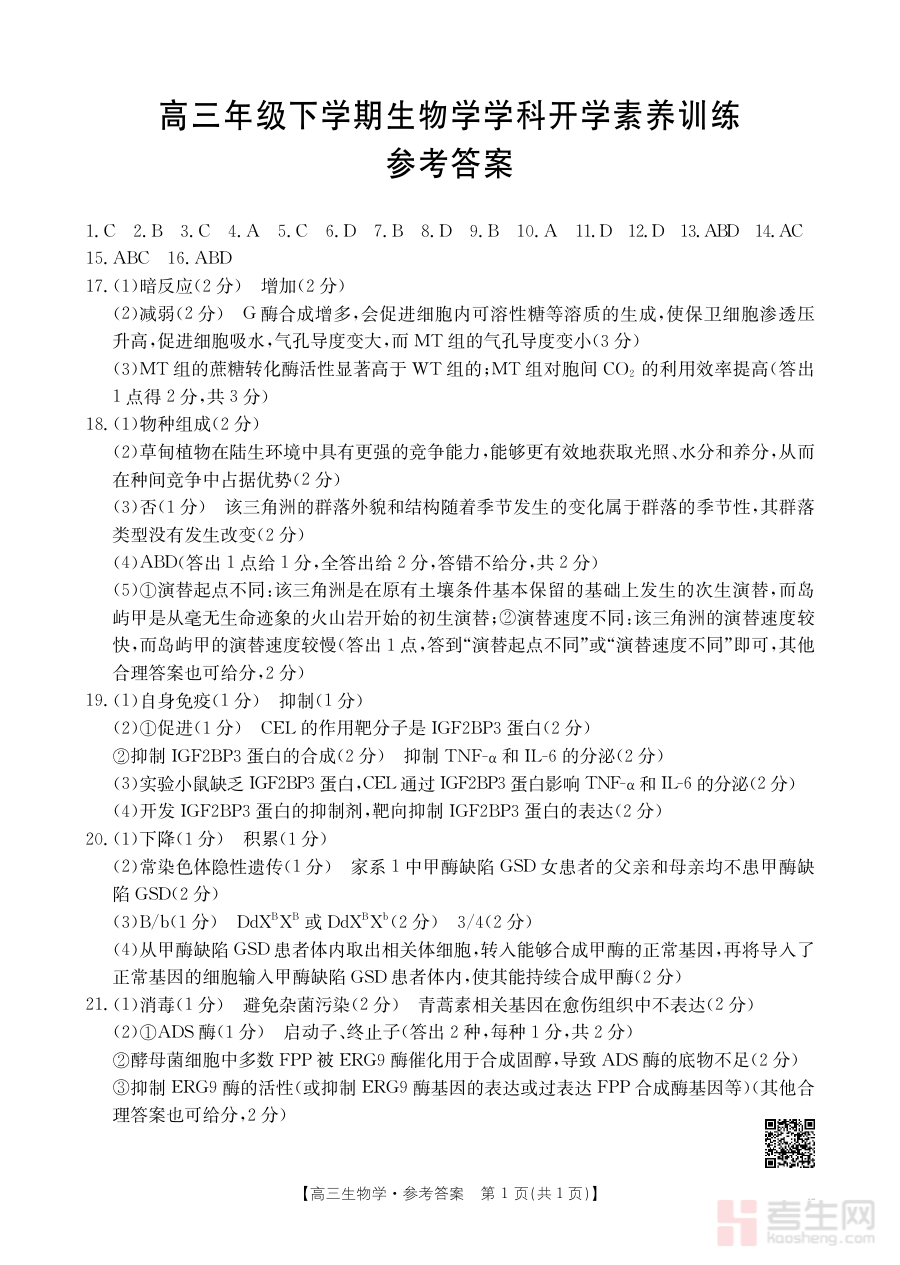 此答案资料的主要用途在于辅助使用者核对开学素养训练的答题结果,清晰呈现训练中涉及的生物学知识掌握程度与能力应用水平。通过参考该答案,学生可快速识别自身在训练过程中存在的知识薄弱点与答题误区,教师则能依托答案反馈的数据进行全面的学情诊断,为后续的教学计划调整与备考策略制定提供客观支撑,确保备考方向与学生实际学习需求高度匹配。