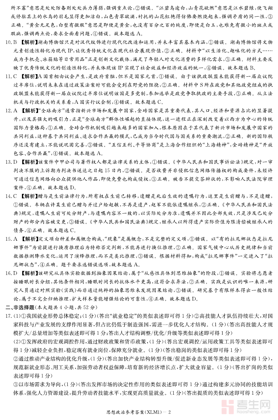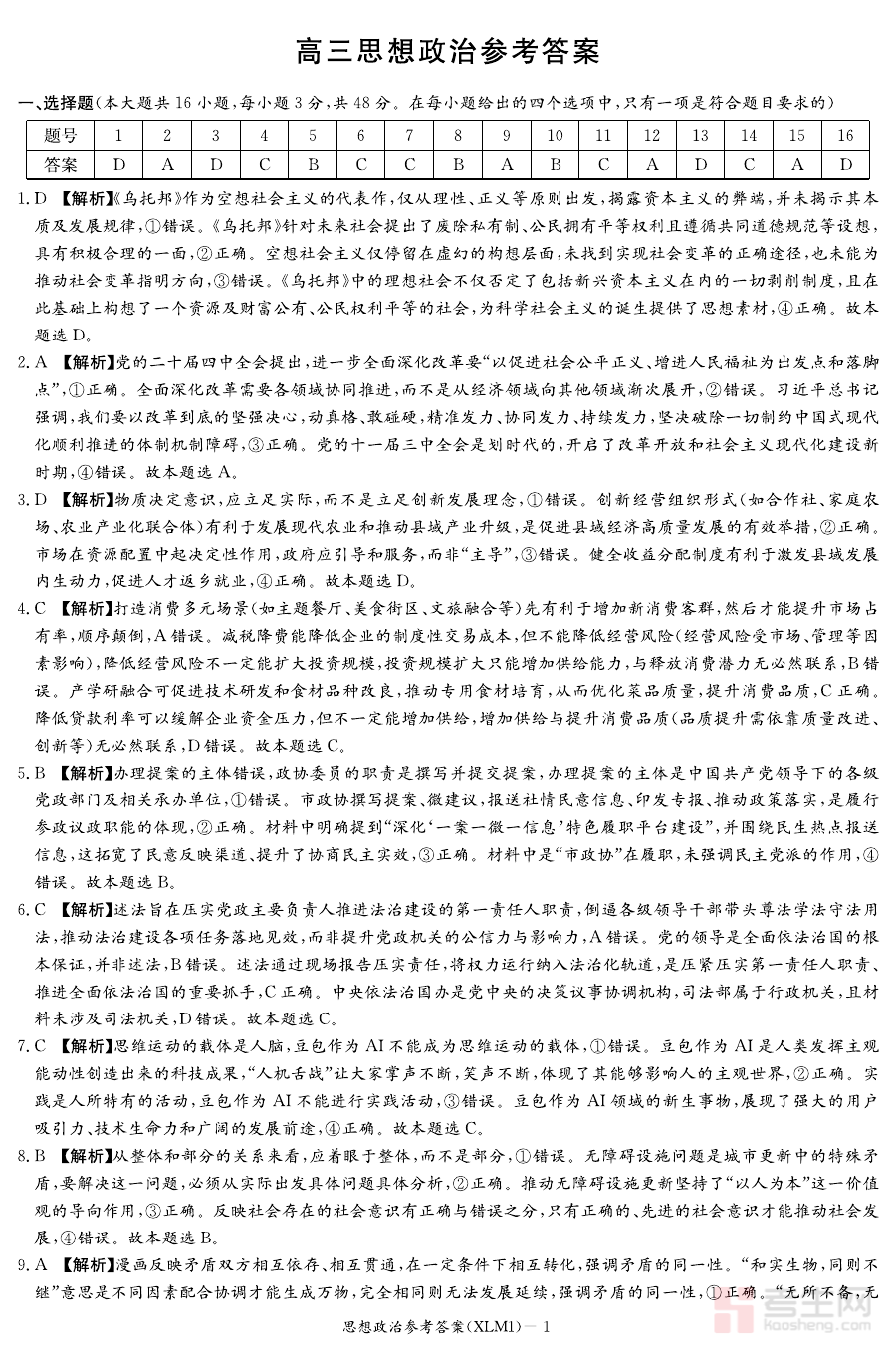 该资料适用于湖南省2026届高三思想政治学科考生、参与该联考的学校教师及备考指导人员。通过参考该答案,考生可深化对思政学科考点的理解、优化答题思路;教师则能借助答案开展试卷讲评与教学反思,增强备考指导针对性与有效性,共同推动高三阶段思政学科备考工作科学开展。