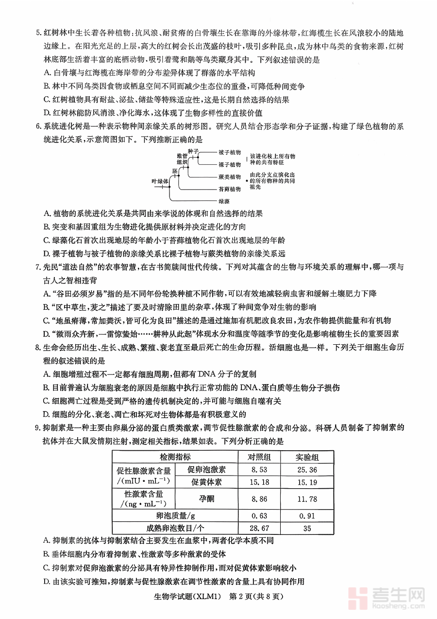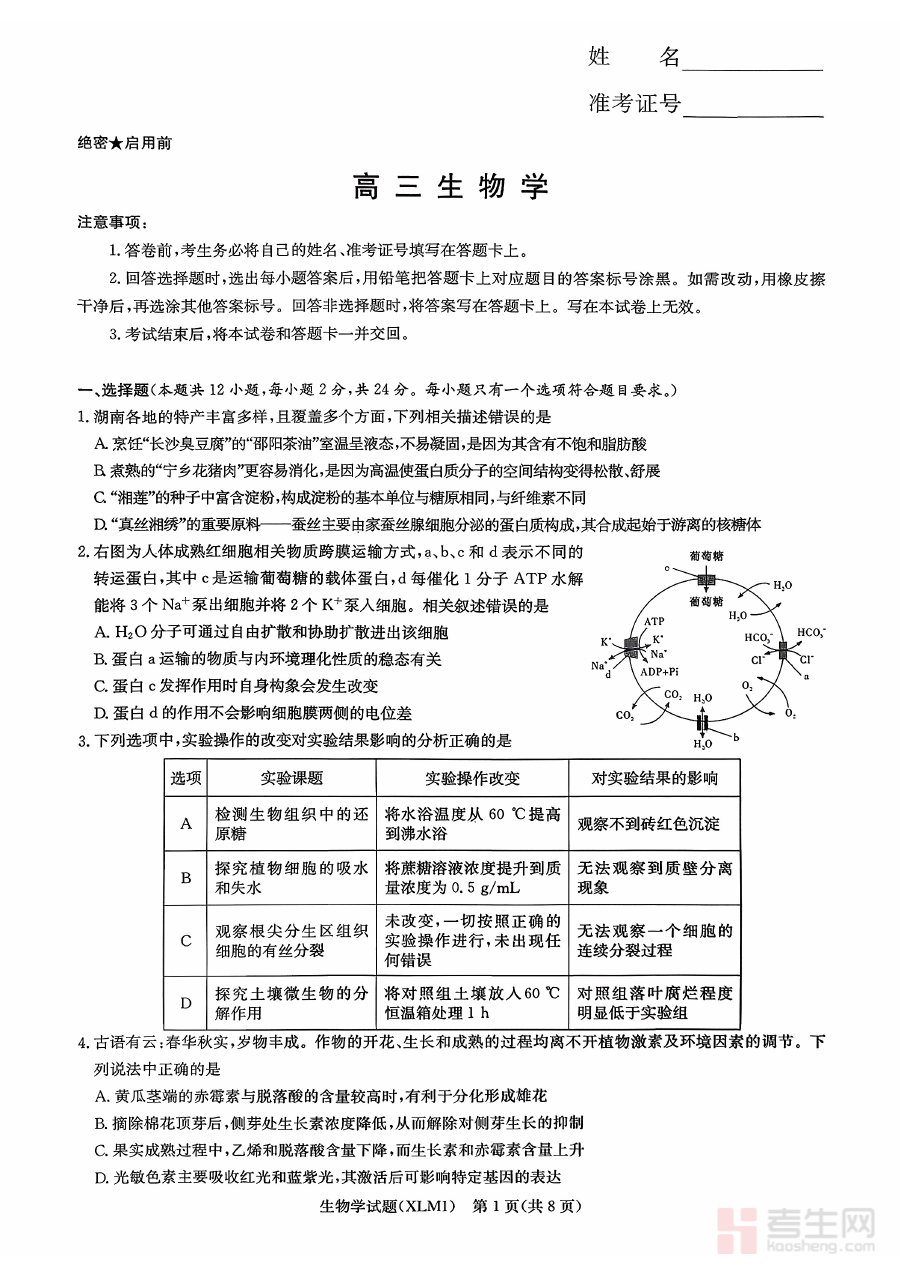 该试卷主要用于高三学生生物学学科的阶段检测与学情诊断,帮助师生及时掌握当前学习进度与知识掌握情况。通过参与此次联考,学生可了解自身在区域内的学习水平,教师则能依据联考结果调整教学策略与备考规划,为后续复习提供数据支撑。
