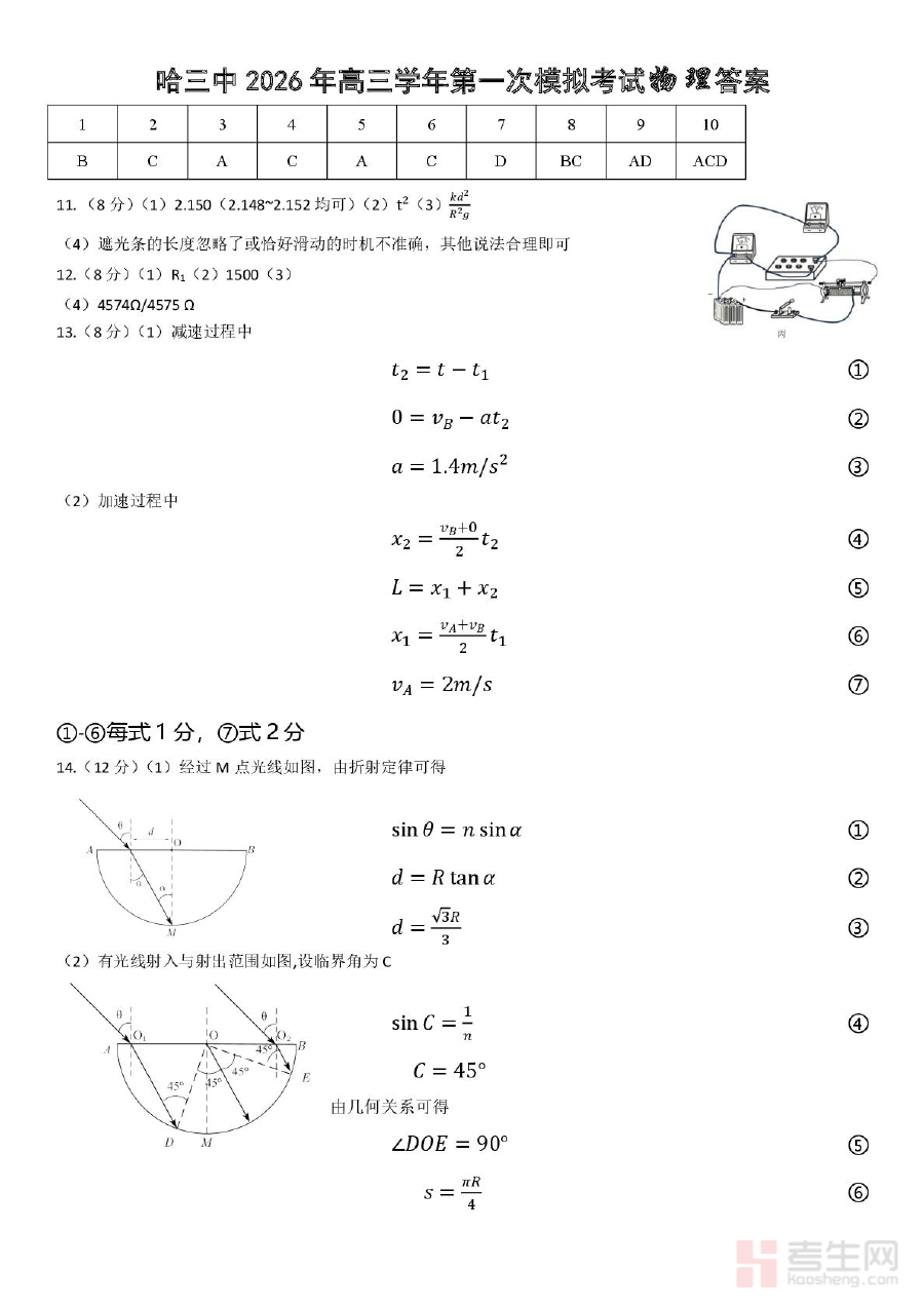 《2026哈三中一模物理 哈三中2026年高三学年第一次模拟考试物理答案》是2026年哈尔滨市第三中学高三学年第一次模拟考试物理科目的配套解答资料,聚焦高三初期阶段性模拟测试场景,为考生提供该次考试物理科目的标准化参考依据,助力对接考试要求与自身学习状态的匹配分析。