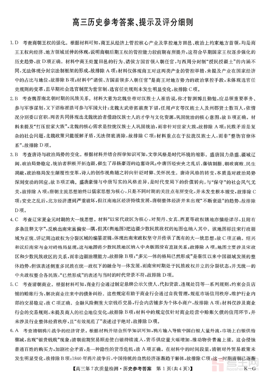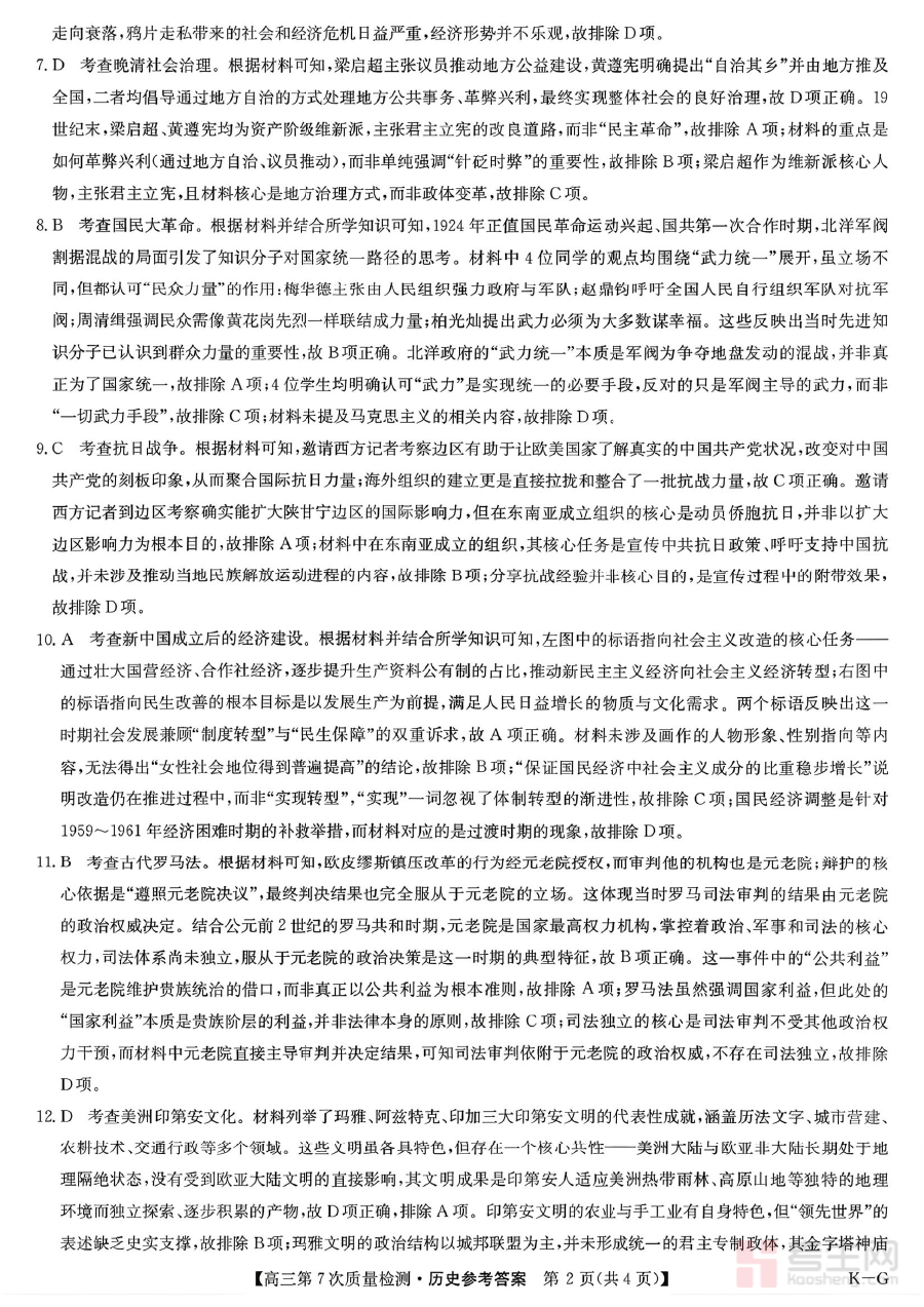 本资料适用于2026届山西省参与九师联盟高三第7次质量检测的学生群体、相关学校的历史学科教师以及教研人员。通过使用该资料学生可高效完成自我检测后的复盘总结优化复习策略;教师能更精准把握学生学习状态制定更具针对性的教学计划;教研人员则可基于答案对应的检测内容分析区域内高三历史学科备考趋势与重点方向进一步提升备考指导的专业性与有效性。