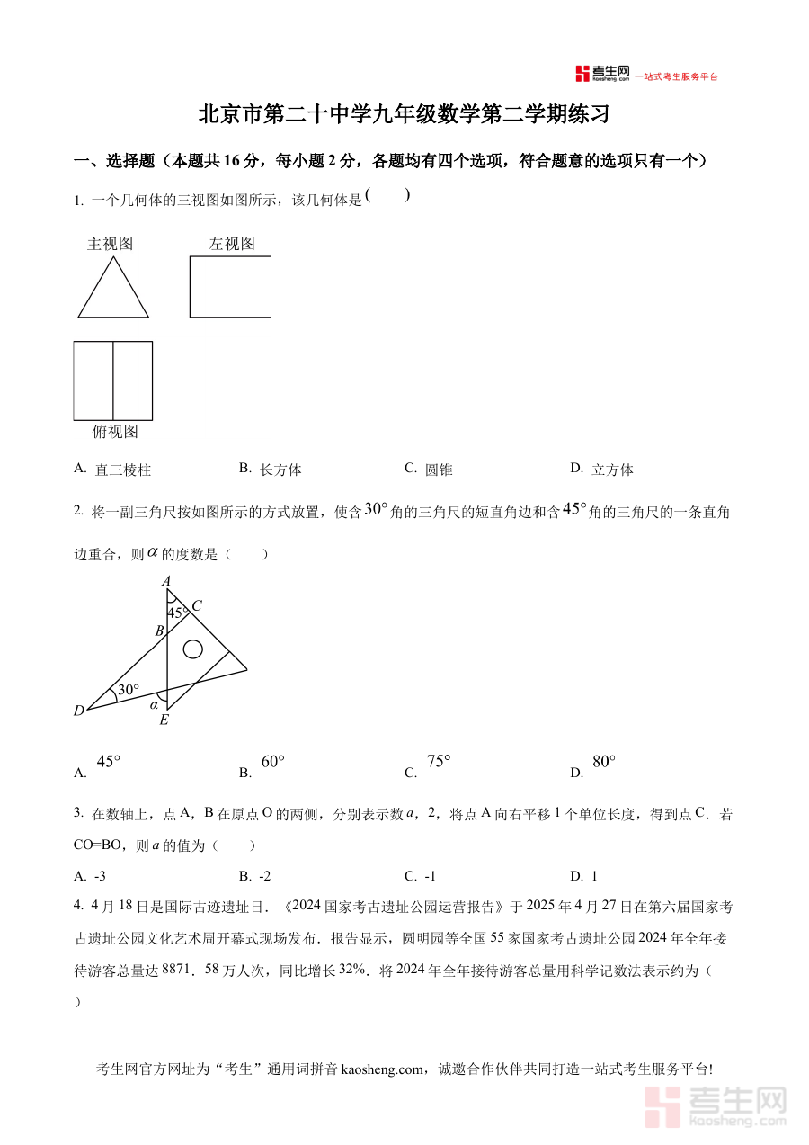 《精品解析:2025年北京市海淀区第二十中学九年级数学中考模拟试卷(原卷版)》是针对2025年北京市海淀区初中毕业生数学学科中考备考的专项模拟资料,结合当地教育教学实际与中考命题趋势设计,为九年级学生提供贴合区域考试特点的练习载体。