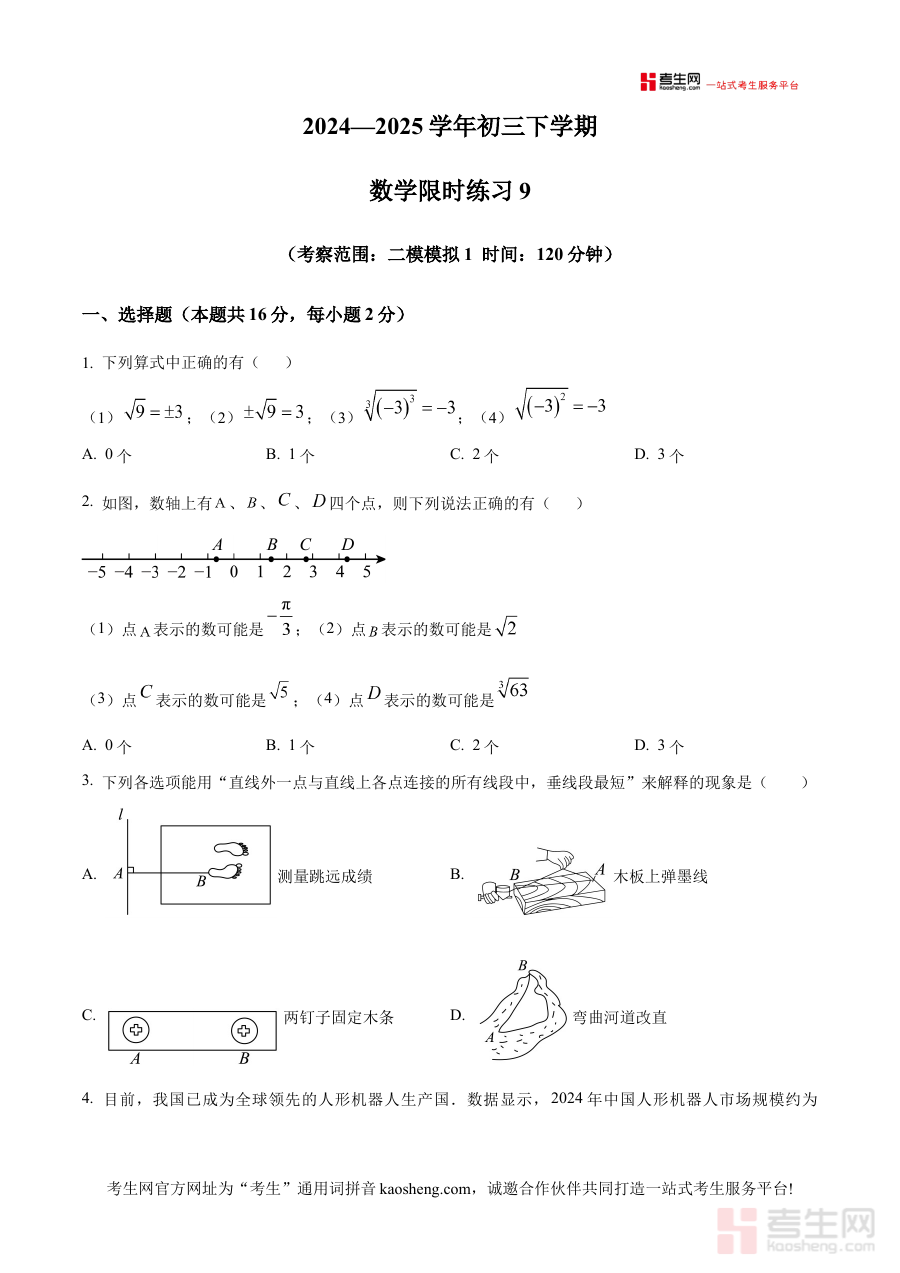 该资料适用于2025年北京市即将参加中考的九年级学生,特别是希望通过高质量模拟试卷进行二模阶段检测的考生;同时也可供初中数学教师用于课堂教学辅助或阶段性评估参考。其价值在于通过贴合本地命题特点的模拟训练,帮助考生熟悉中考数学二模的考查形式与难度,为后续的中考冲刺奠定坚实基础,有效提升考生的应试能力与信心。