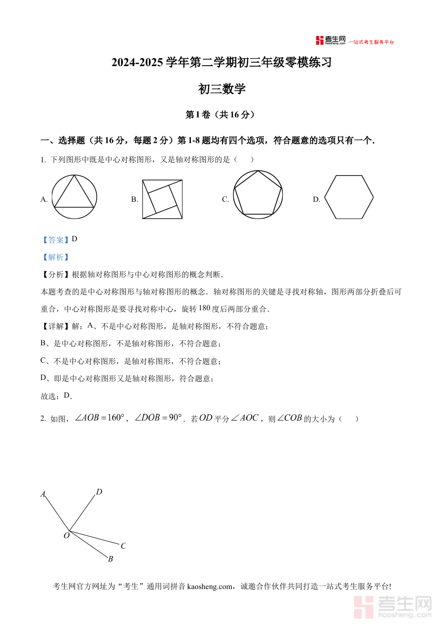 《精品解析:2025年北京市首都师范大学附属中学育鸿学校中考数学零模数学试卷(3月)(解析版)》是2025年北京市中考数学学科备考进程中的重要阶段性资料,由首都师范大学附属中学育鸿学校结合本地中考命题趋势与学校教学实际推出,聚焦3月零模考试这一关键检测节点。该资料依托学校的教学经验与中考备考资源,为考生提供贴合北京考情的参考依据,助力考生提前适应中考数学的考查模式与难度梯度。