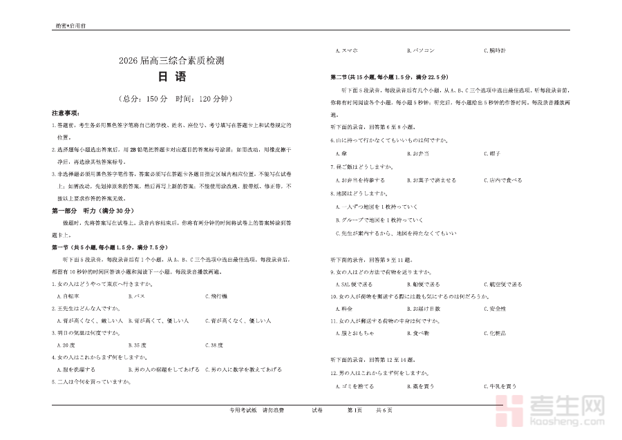 该试题主要适用于2026届安徽江南十校的高三日语学生、日语学科教师及相关备考指导人员。对于学生而言,它是自我检测、查漏补缺的有效工具;对于教师而言,它能辅助开展学情分析与教学内容调整;对于备考规划来说,其区域针对性特点可帮助使用者更好地把握本地高考日语备考的重点方向,明确阶段性学习目标,为最终的高考日语考试筑牢基础。