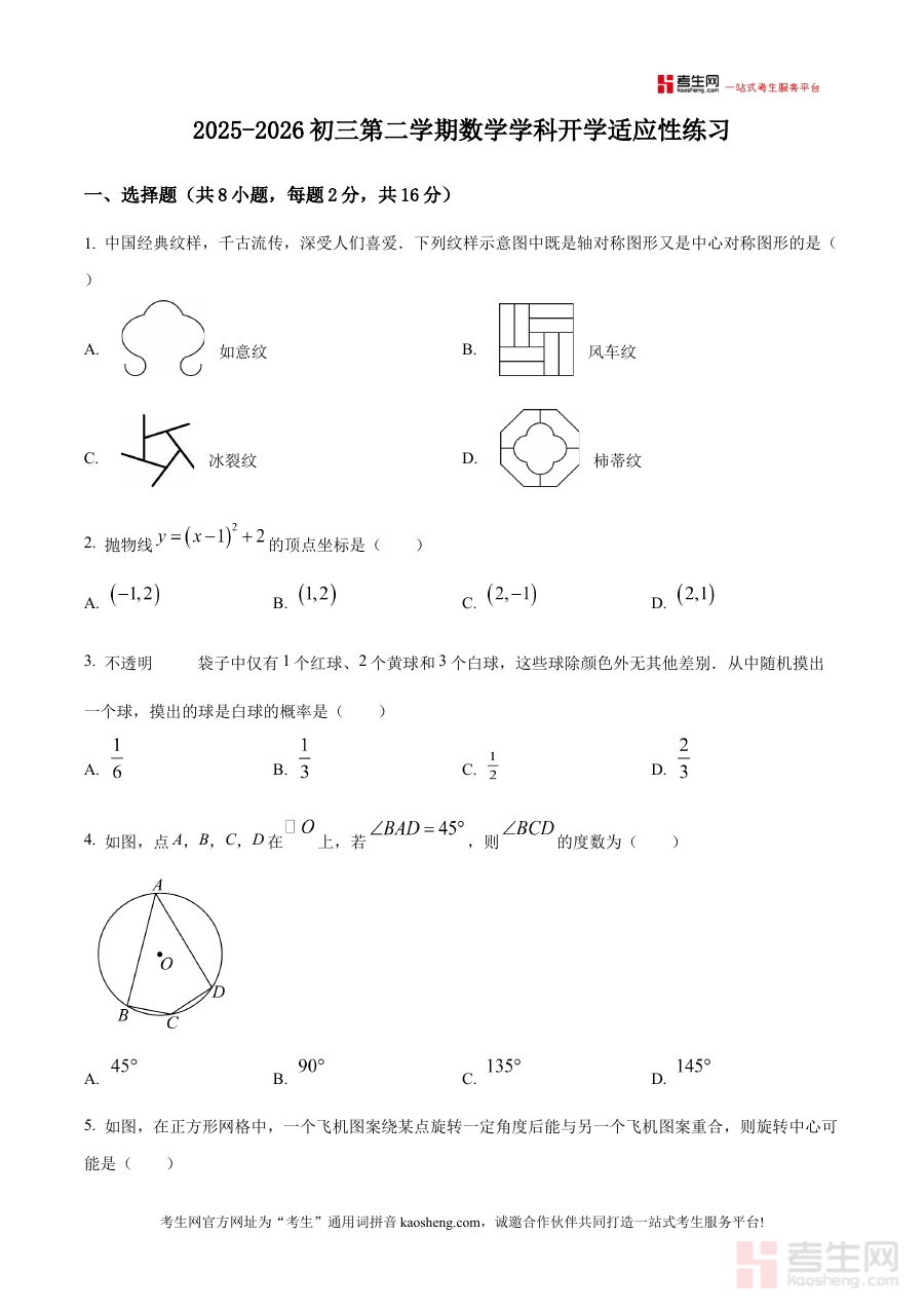 《精品解析:北京师范大学附属中学2025-2026学年九年级下学期学情自测 数学试题(原卷版)》是北京师范大学附属中学针对2025-2026学年九年级下学期学生推出的数学学情自测类资料,属于校内阶段性检测范畴,为学生提供贴合本校教学进度与要求的备考支持。