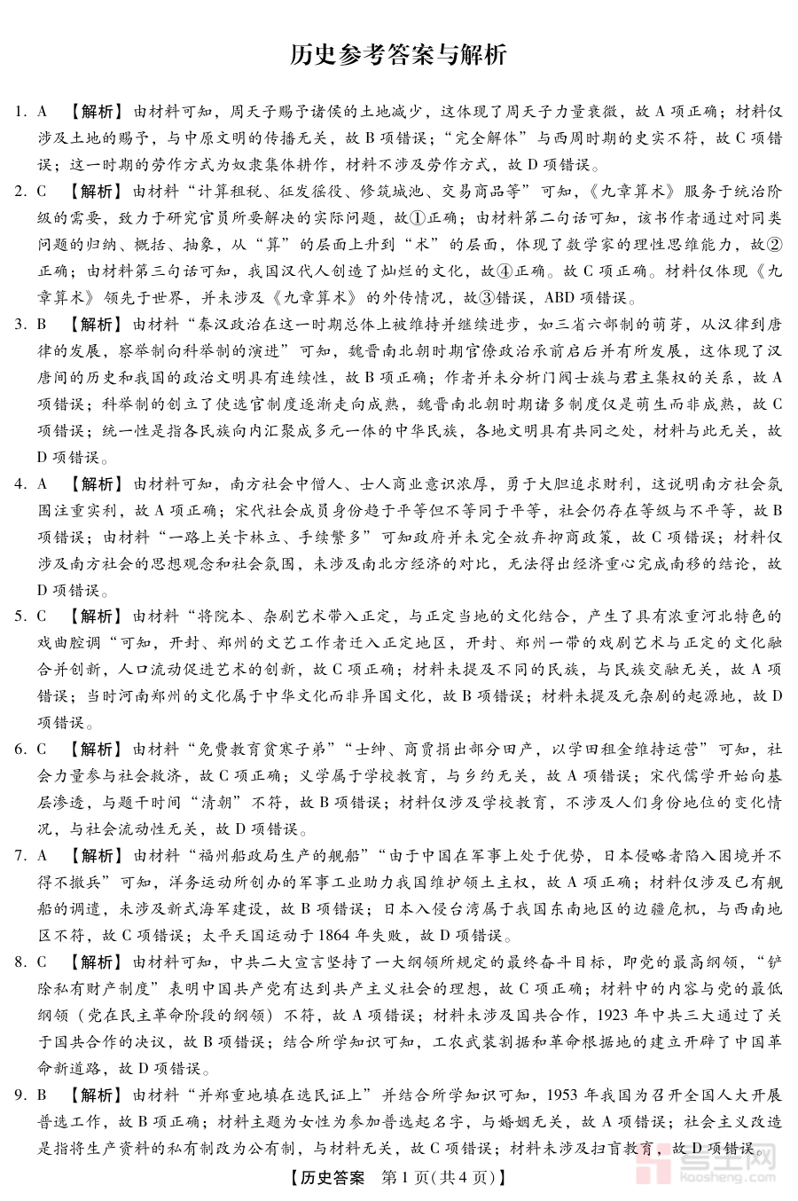 这份答案解析的核心用途在于帮助考生快速核对自身答题结果,明确考试中的得分要点与失分原因,梳理历史学科的解题逻辑与思维路径;同时,它也为教师提供了学情分析的重要依据,便于教师精准把握学生对历史知识的掌握程度、答题习惯及能力短板,从而为后续的教学调整与备考规划提供数据支持和方向指引。