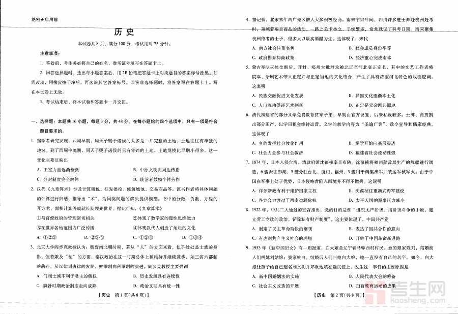 《2025-2026学年下学期2023级高三第1次考试历史试卷(新未来联考)》是针对2023级高三学生在2025-2026学年下学期参与的新未来联考首次历史考试所设计的备考资料,其时间节点处于高三下学期初期阶段,是学生进入高考关键备考周期后的重要阶段性测试材料,能够有效反映该阶段学生历史学科的知识储备状况与应试能力表现。