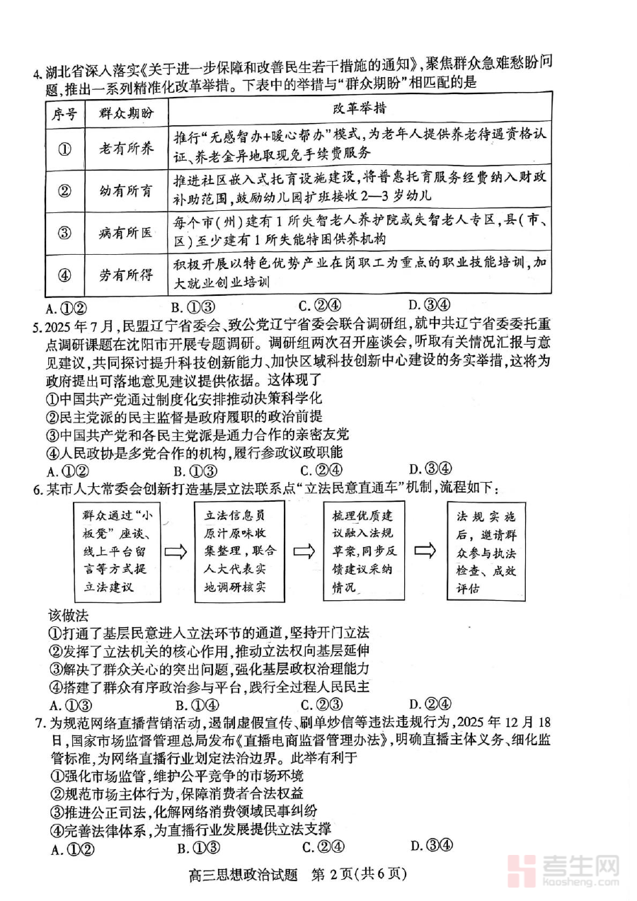 此资料主要适用于2026届湖北省襄阳市的高三学生、思想政治学科教师及相关教育工作者。对学生而言,完成测试并对照答案分析可实现阶段学习效果的检测与反思;对教师来说,借助测试结果能优化教学策略与备考指导方向,共同推动高三思想政治学科高效备考进程。