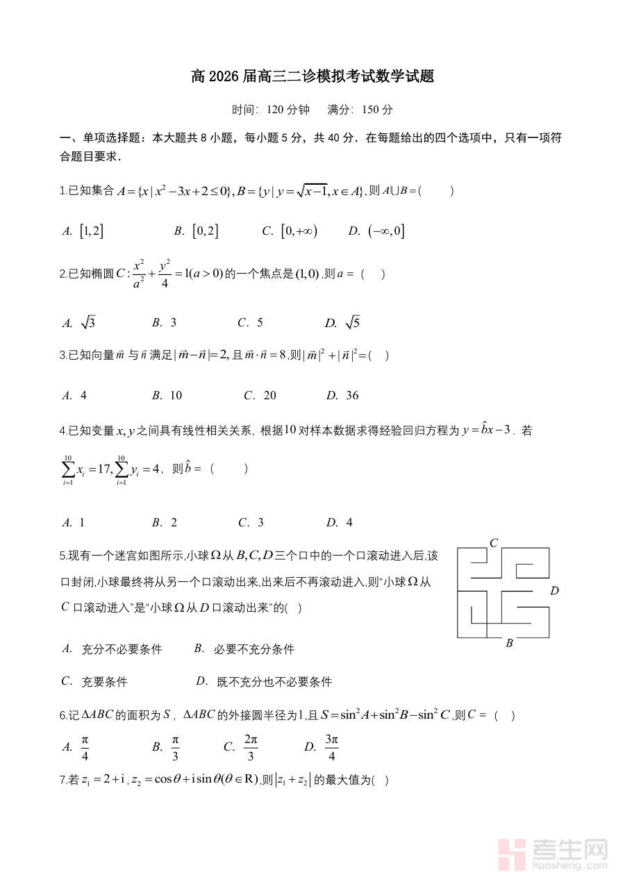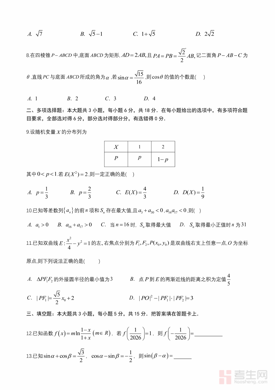 《成都市第七中学2025~2026学年度下期高2026届二诊模拟考试 数学》是成都市第七中学在2025至2026学年度下期面向高2026届学生推出的二诊模拟考试数学学科资料。作为区域性高中阶段重要模拟考试的备考资源,它紧密贴合当地教学进度与二诊考试的核心导向,为学生搭建了与正式考试模式一致的练习场景,助力学生提前适应考试氛围与要求。