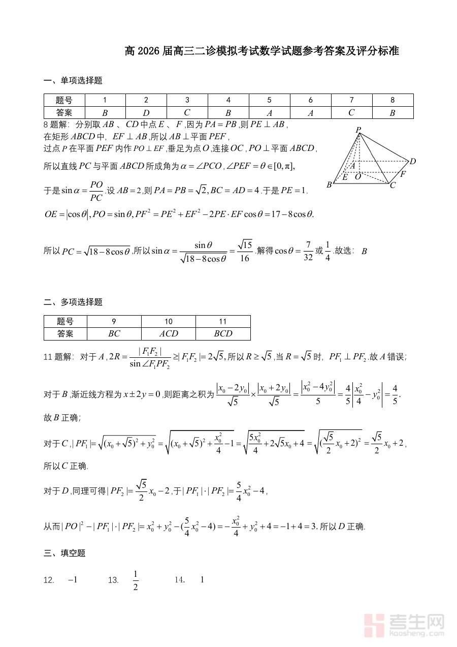 该资料适用于成都市第七中学高2026届全体学生及执教该年级的数学教师群体。对学生而言,对照答案能及时查漏补缺、巩固知识体系;对教师而言,借助答案可更精准地分析学生学习状态,制定科学有效的备考方案。其核心价值在于帮助师生在二诊模拟考试后完成系统的阶段总结,为后续高考备考筑牢基础。