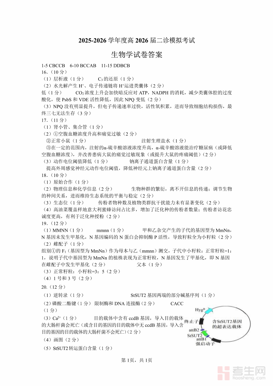 《成都市第七中学2025~2026学年度下期高2026届二诊模拟考试 生物答案》是针对成都市第七中学高2026届学生在2025-2026学年度下期开展的二诊模拟考试所配套的生物学科答案资料,属于区域内高中阶段重要模拟考试的辅助备考资源,能够为考生提供权威的作答参考依据。