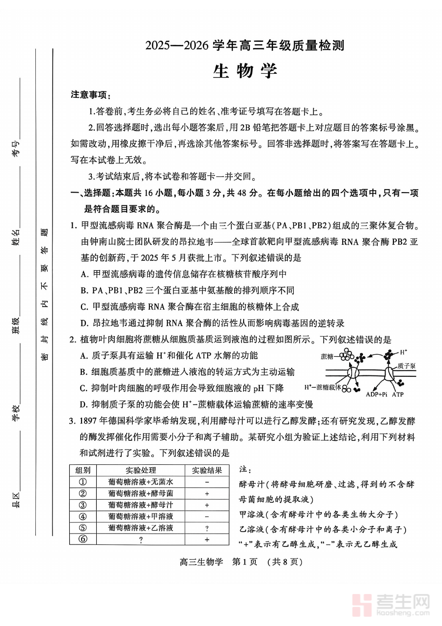 本试卷适用于河南省洛阳市2025-2026学年高三年级的学生、生物学科教师以及参与该区域高三生物备考工作的教育研究者,作为高三下学期关键节点的第三次质量检测资料,它能有效检验前一阶段复习成效,助力师生精准把握备考节奏,为高三后期冲刺阶段的生物复习规划提供重要参考价值。