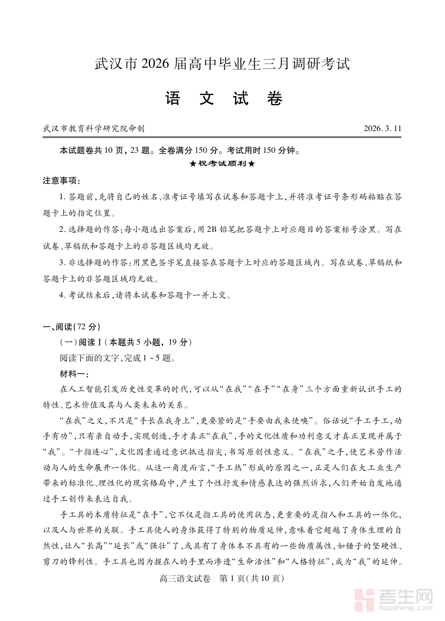 此资料主要适用于武汉市高三年级的语文教师及在读学生。对于学生,使用该资料进行阶段检测或模拟练习,能够熟悉调考的考查形式与命题特点,提前适应考试节奏,为后续高考复习明确方向;对于教师,该资料可作为把握调考趋势、优化教学策略的重要参考,助力学生在关键复习阶段提升语文综合能力,为高考取得理想成绩奠定坚实基础。