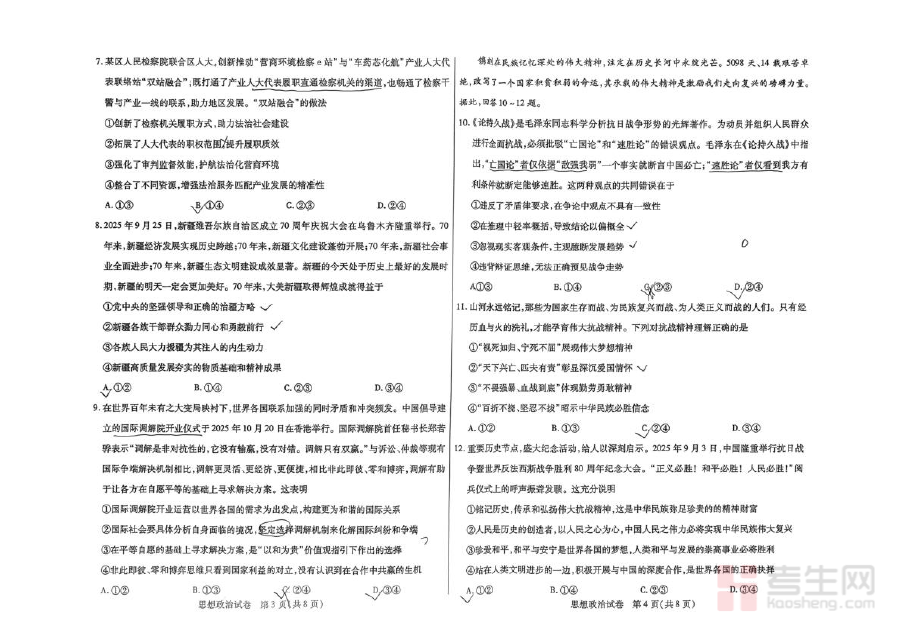 该资料主要用于高三政治学科的学情诊断与阶段检测,帮助学生和教师准确把握当前学习状态。通过完成试题,学生可直观了解自身对政治学科核心知识、关键能力的掌握程度;教师则能依据试题完成情况分析班级整体学习水平与共性问题,为后续制定更具针对性的复习计划提供依据,有效衔接后续的二轮复习与冲刺阶段。
