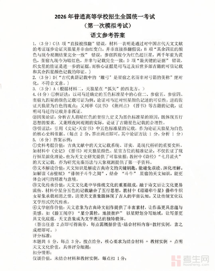 《内蒙古包头市2026年高三第一次模拟考试 语文答案》是内蒙古包头市针对2026届高三年级组织的第一次模拟考试语文科目的配套答案资料,属于区域性高三阶段关键模拟考试的辅助备考材料,为该次考试的相关参与者提供必要的参考依据。