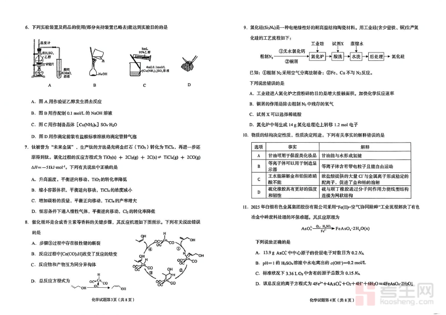 该资料主要用于高三学生化学学科的阶段学情诊断与备考规划优化。通过模拟考试的形式,学生能够系统检测自身对化学核心知识的掌握程度、解题思路的运用熟练度及应试状态的调整能力,精准定位学习中的薄弱模块与知识盲区;教师则可依据试卷反馈的整体数据把握班级学生的学习进度差异与共性问题,进而针对性调整后续复习计划的内容与节奏,提升备考指导的精准性与有效性。