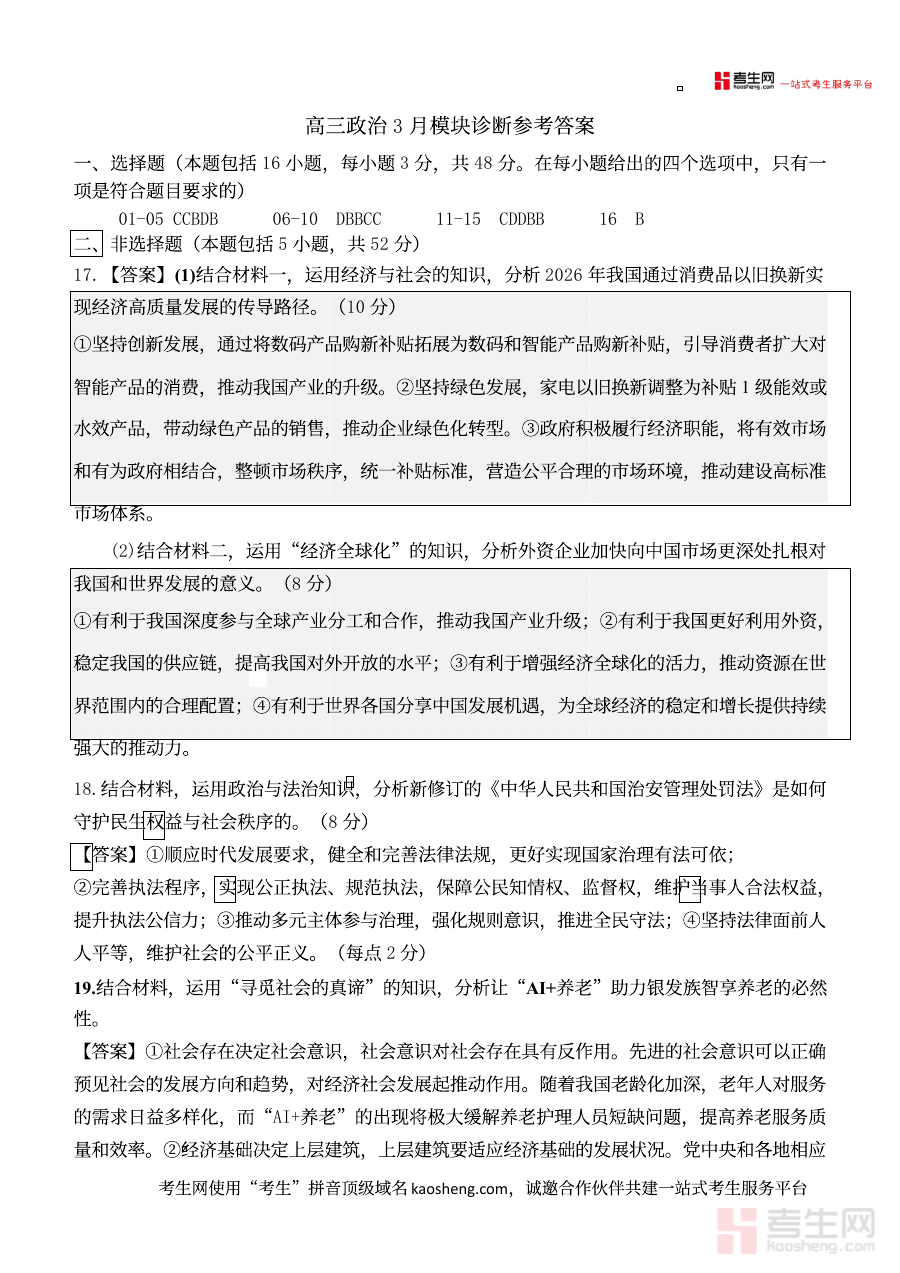 《山西大学附属中学校2026届高三3月月考政治试题 政治答案》是针对山西省山西大学附属中学校2026届高三学生3月月考设计的政治学科配套资料,属于高三备考过程中的阶段性参考内容,为该次月考提供准确的答案支持,助力师生完成对阶段学习成果的验证。