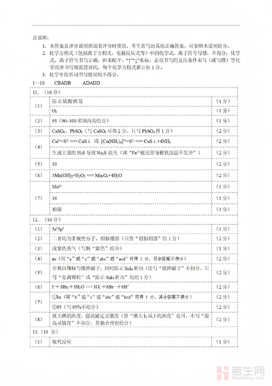 该参考答案可用于帮助师生对本次质量检测的化学学科答题情况进行精准分析,助力教师掌握班级整体学情与学生个体知识薄弱点,同时为学生自我评估学习效果、调整后续备考方向提供客观参考,是阶段检测后开展针对性教学与复习规划的重要支撑。