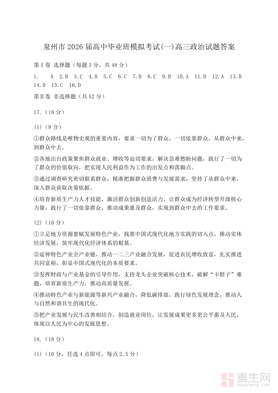 《泉州市2026届高中毕业班模拟考试(一)高三政治试题及答案 泉州市2026届高中毕业班模拟考试(一)高三政治试题及答案》是福建省泉州市针对2026届高三学生推出的政治学科阶段性模拟考试资料,包含试题与参考答案两部分内容,属于当地高中毕业班首轮模拟测试的配套教学资源。