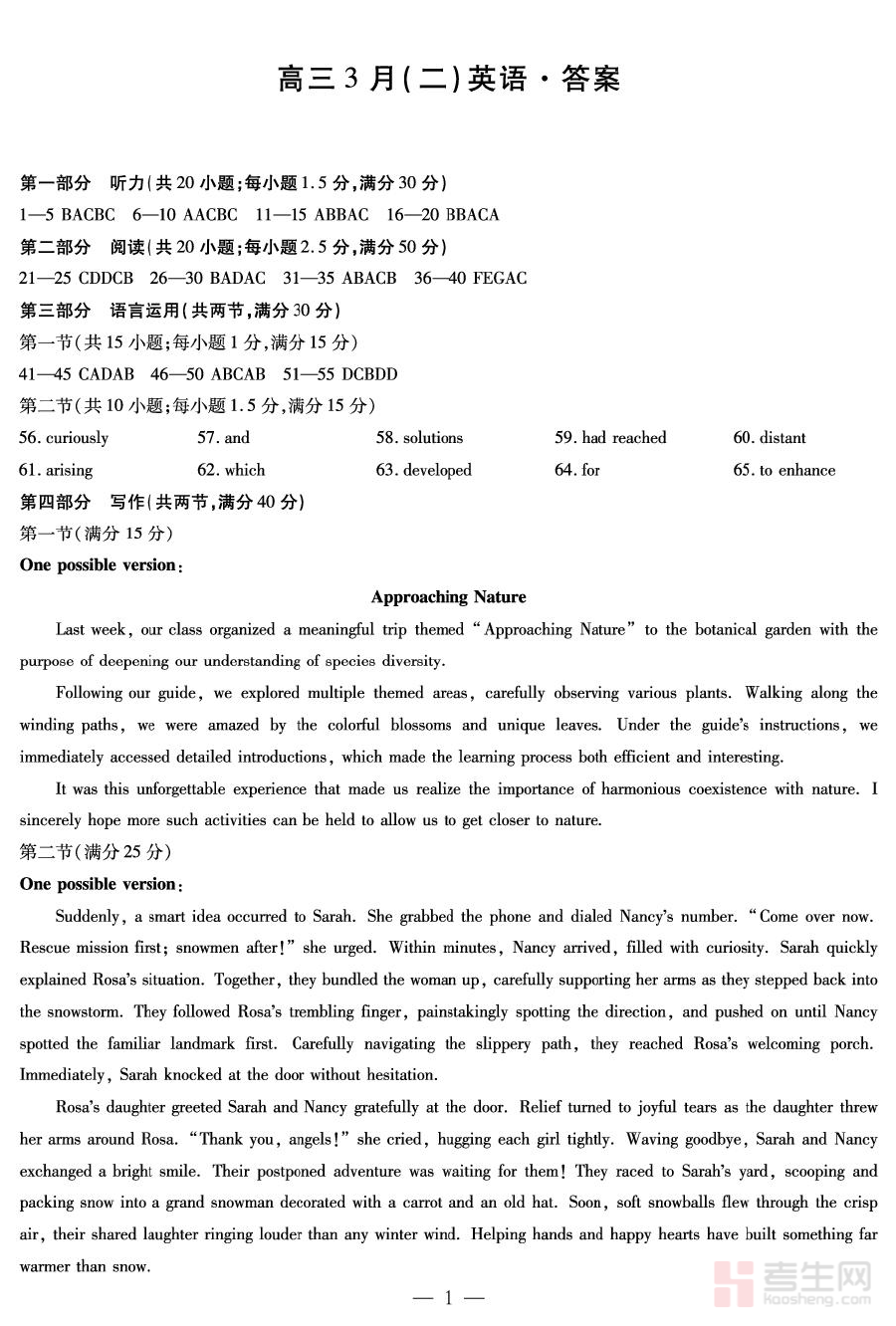 该资料包含完整试题及详细解析内容,可用于高三学生在3月阶段开展自我学情诊断,帮助教师精准把握学生对英语知识的掌握程度,为后续的备考规划提供可靠的数据支撑,同时也可作为阶段检测工具使用,辅助师生及时调整复习策略,有效填补知识薄弱环节。