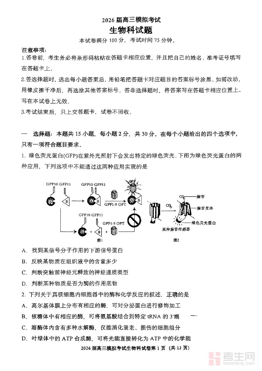 该资料适用于2026届高三学生,尤其是参与此次五校联考的学校学生,也可供吉林省内其他高三学生作为生物学科备考参考。它在阶段检测中的价值突出,能帮助学生明确自身在区域内的学习水平定位,助力制定更具针对性的复习计划,提升生物学科的备考效率,为高考生物科目取得理想成绩奠定坚实基础。