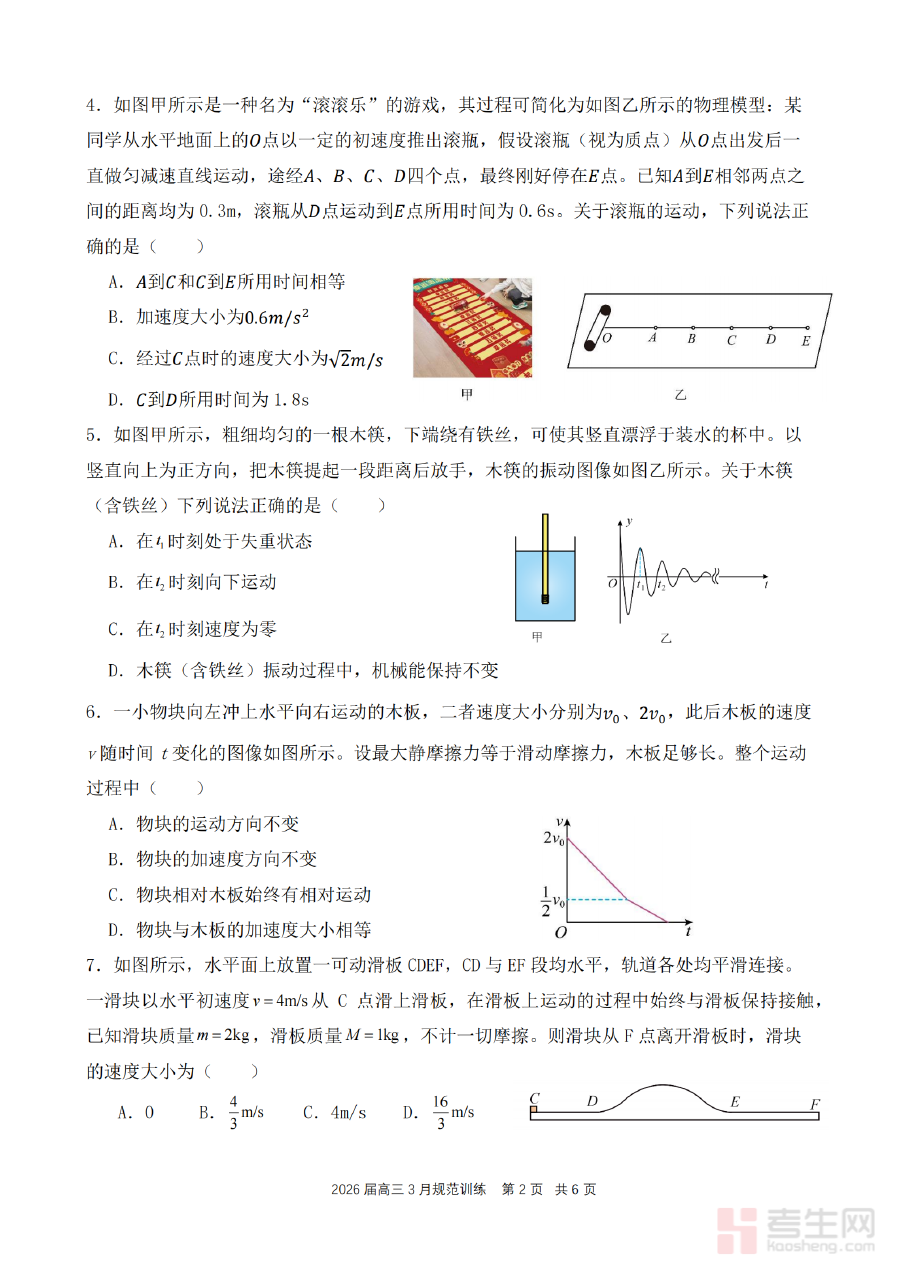 《安徽省合肥市一六八中学2026届高三3月份规范训练 物理》是安徽省合肥市一六八中学针对2026届高三学生打造的物理学科阶段性训练资料。该资料紧扣高三下学期3月份的备考节点,结合学校教学进度与学生学习特点,为学生提供贴合校情的规范训练内容,旨在帮助学生巩固已学知识,熟悉答题规范,为后续高考备考积累实战经验。