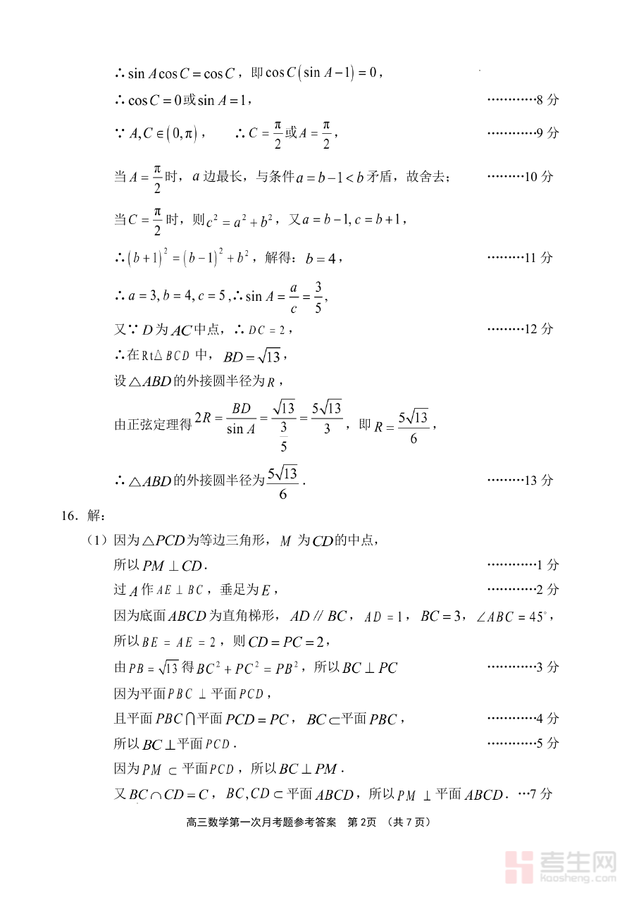 本资料适用于文昌中学2025届高三学生及相关数学教学人员,对学生而言,通过答案比对能明确月考作答中的优势与不足,为下一阶段复习方向提供具体指引;对教师而言,可依托该答案开展高效的试卷讲评与学情分析,提升教学的精准性,推动高三数学备考工作有序开展。