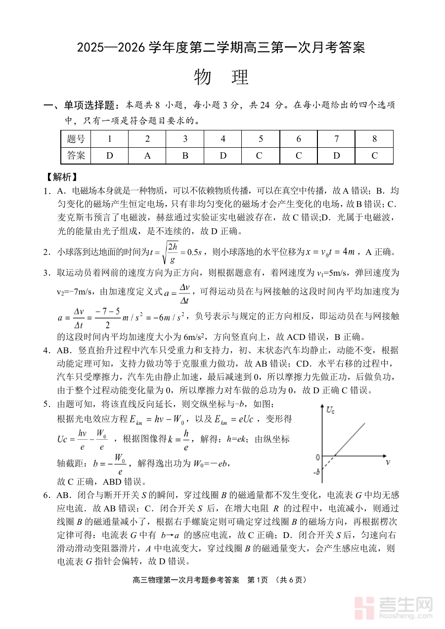 《文昌中学2025一2026学年度第二学期高三第一次月考试题 物理答案》是针对2025至2026学年第二学期文昌中学高三学生第一次物理月考的配套答案资料。作为高三下学期初期的重要检测配套资源,该资料对应高三阶段关键的第一次月度检测考试,能够为师生提供该次考试物理学科作答结果的权威参考,是高三物理学科阶段性备考过程中的重要辅助材料。