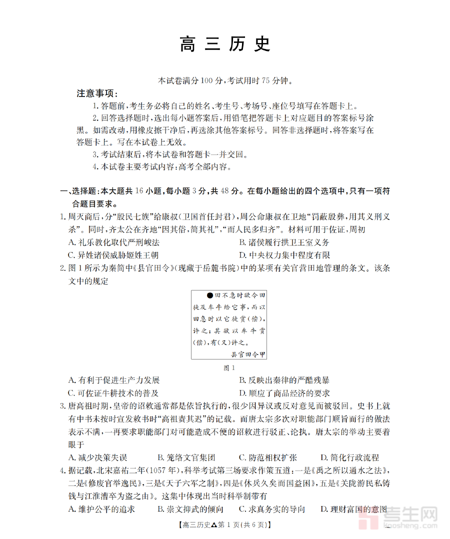 《陕西省2026届高三下学期3月联考(26-287C)历史》是面向陕西省2026届高三学生的历史学科阶段性联考资料,该考试安排在高三下学期3月这一关键备考阶段,属于区域内多校联合组织的标准化检测,旨在为学生提供贴近高考的模拟考查场景,帮助学生提前适应考试节奏与考查形式,为后续高考备考奠定基础。
