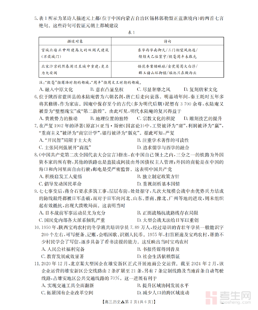 此资料的核心适用人群为陕西省2026届高三在读学生及从事高三历史教学工作的教师,对于学生而言,它是检验前期复习效果、优化备考规划的重要工具;对于教师而言,它能为教学决策提供数据支持,助力提升整体备考质量,共同推动学生在高考历史学科中取得理想成绩。
