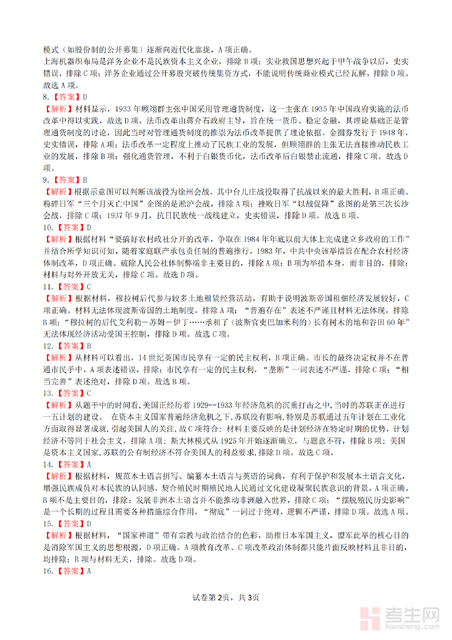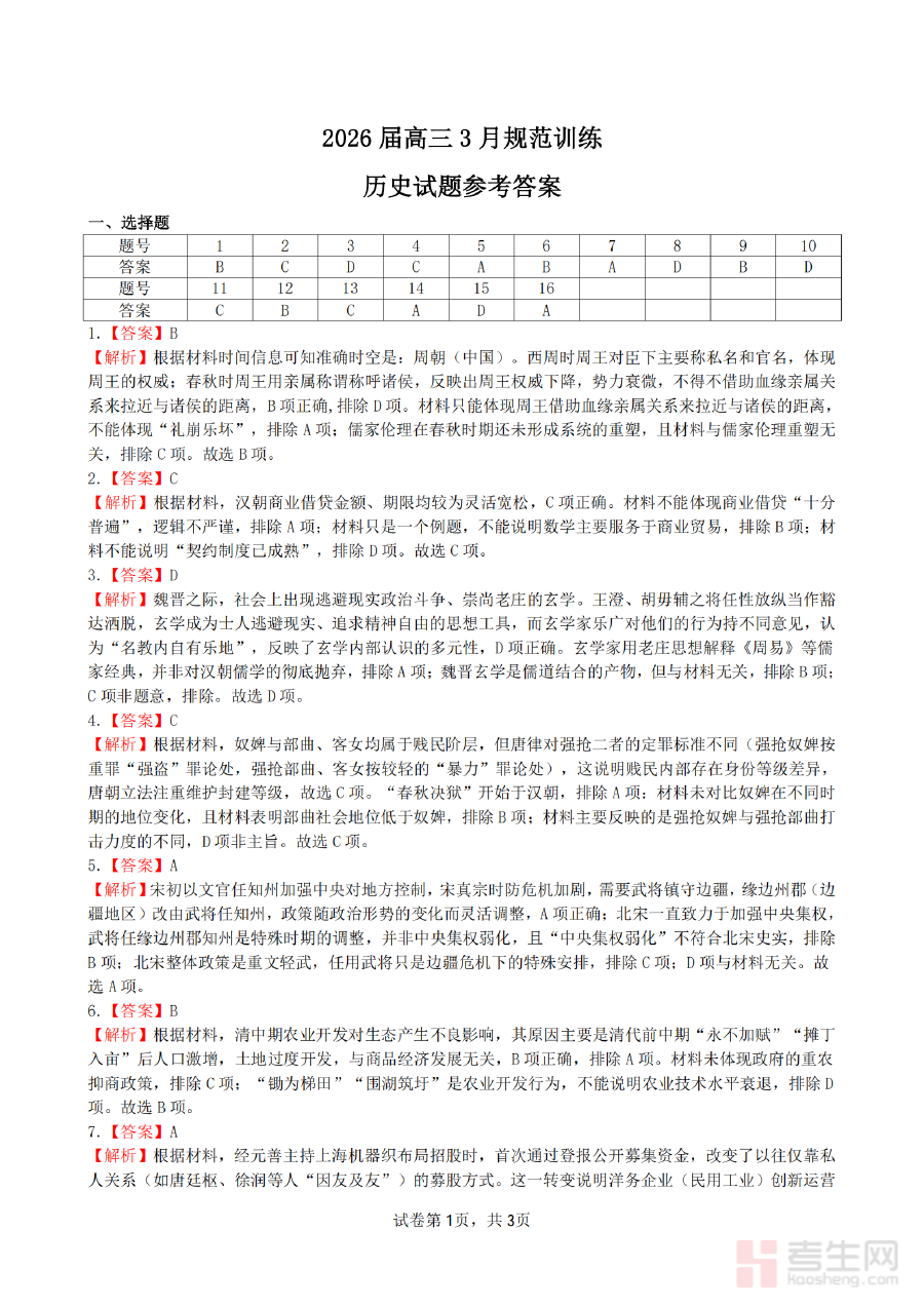 《安徽省合肥市一六八中学2026届高三3月份规范训练 历史答案》是针对安徽省合肥市一六八中学2026届高三学生3月份历史学科规范训练的配套答案资料,属于高三历史备考过程中的阶段性辅助材料。该资料与学校组织的3月份规范训练紧密对应,为师生提供了训练结果的标准参考依据,助力高三历史备考工作的有序推进,是衔接前期复习与后续冲刺阶段的重要支撑材料。