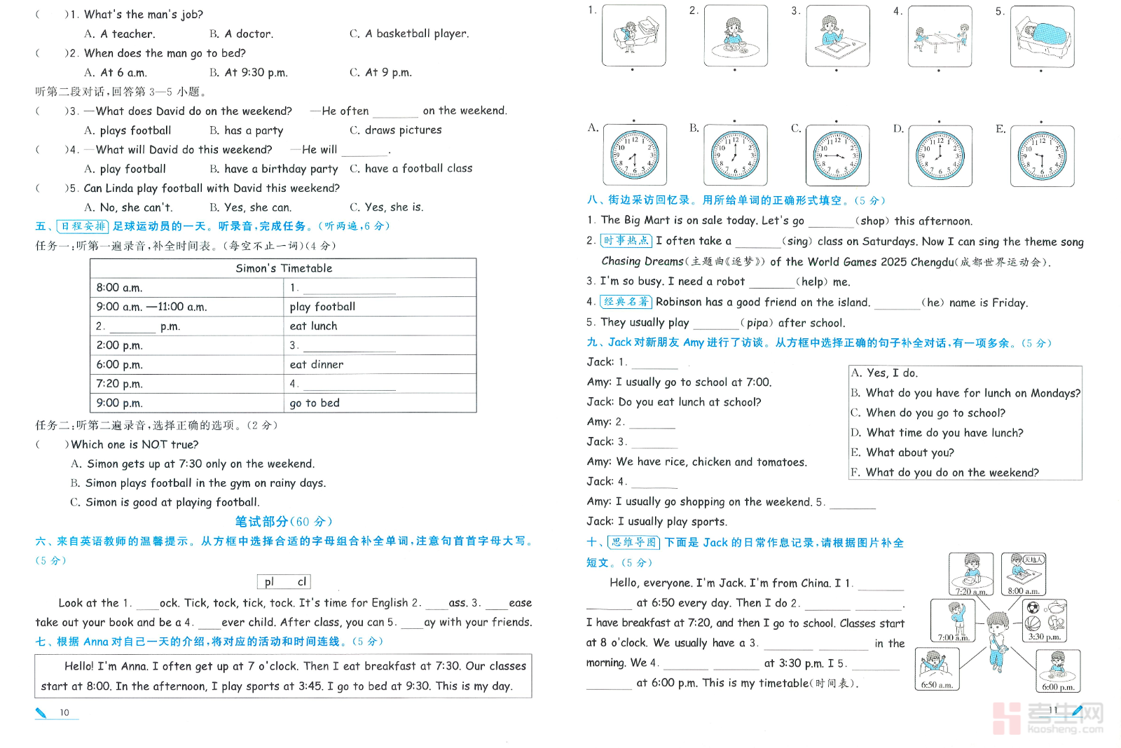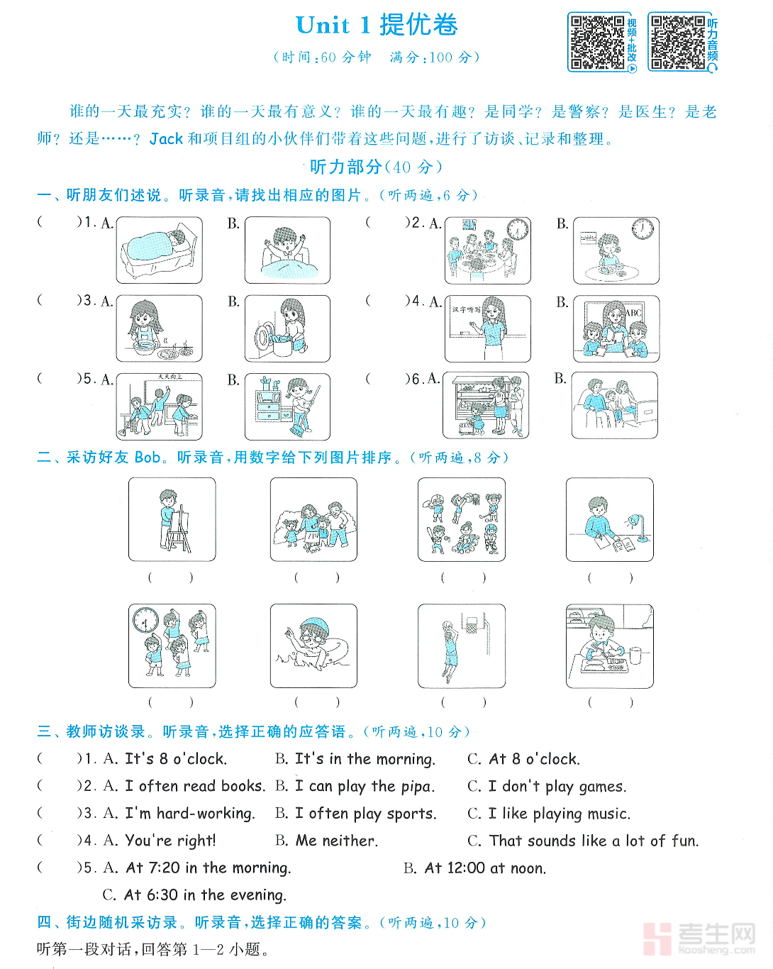 26 春小学英语第一单元测试卷(人教版)(五年级下)紧扣人教版五年级下册教材第一单元知识点,贴合课堂教学与校内测评标准,全面考查词汇拼写、短语运用、句型转换、情景对话、阅读理解等核心内容,题型涵盖听力、单选、填空、匹配及简答,难度适中且梯度合理,侧重基础巩固、知识应用、易错点检测、综合能力。试卷排版清晰、实用性强,适合五年级学生单元学情检测、课后巩固练习、知识点查漏补缺、考前模拟训练,帮助学生及时掌握学习情况,稳步提升英语应试水平。请添加微信 18617049513 进专属群,获取更多免费资源