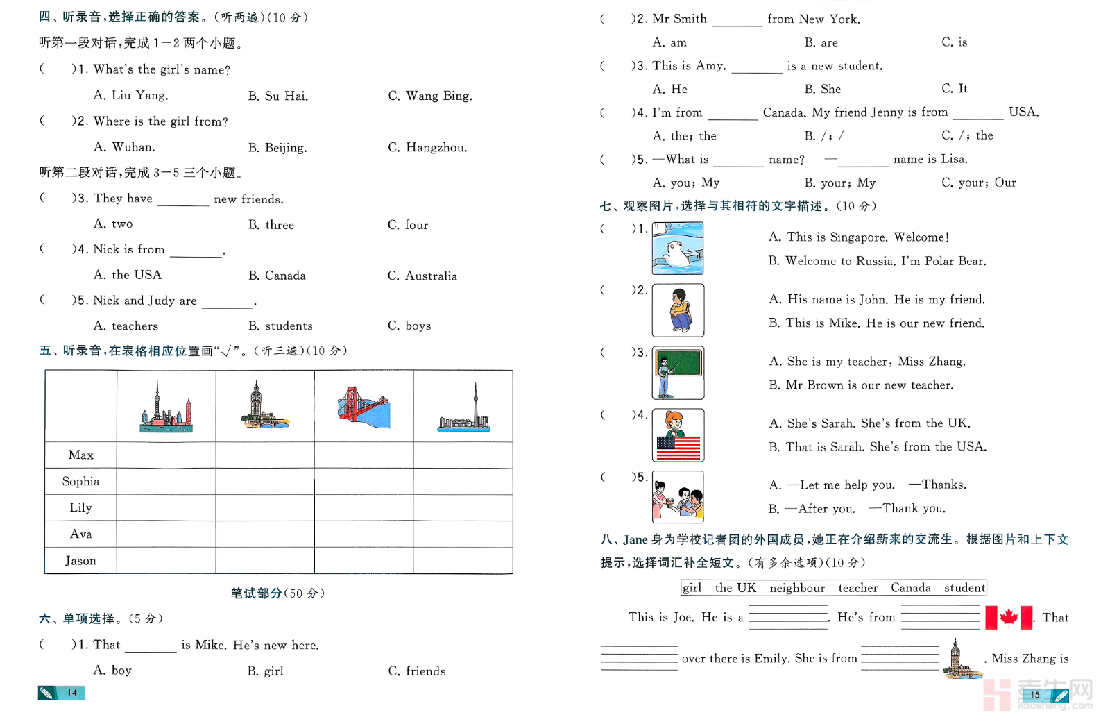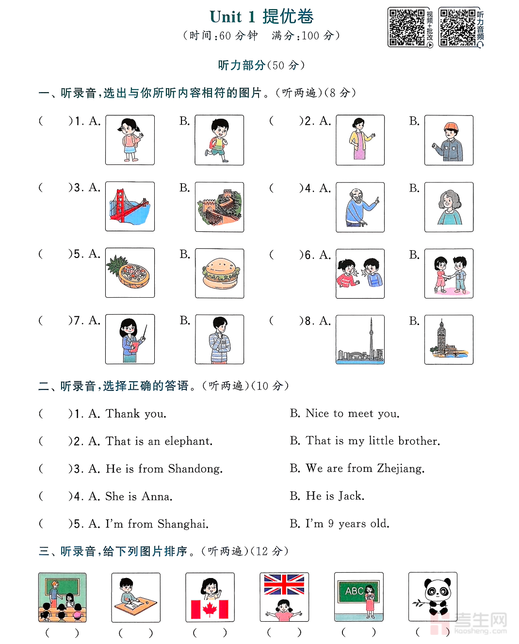26 春小学英语第一单元测试卷(人教版)(三年级下)同步人教版三年级下册英语教材第一单元知识点编写,贴合低年级英语考试要求,全面考查单词认读、词汇拼写、重点句型、情景对话、简单判断等基础内容,试卷题型丰富有趣、难度适中,着重夯实字母发音、单词记忆、句型运用、日常交际能力,兼顾趣味性与实用性。适合三年级学生单元自测、课堂检测、课后巩固、考前复习,快速检验学习成果,有效提升英语基础与应试能力。请添加微信 18617049513 进专属群,获取更多免费资源
